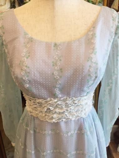 60's アメリカヴィンテージ ウエストレース花柄オーガンジードレス Size:約M lalb6014