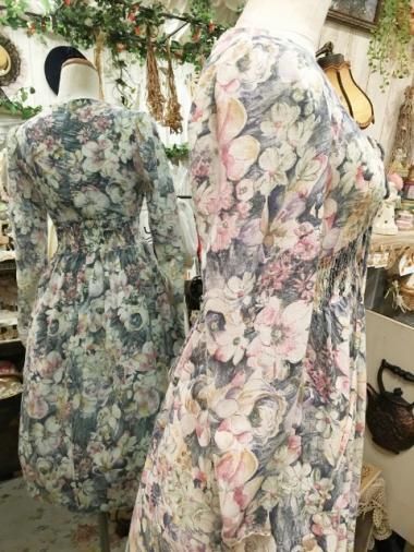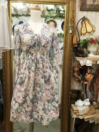 アメリカヴィンテージ Candi Jones 水彩画風フィットフレアワンピース lalb6018