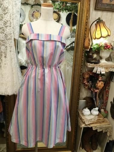 アメリカ輸入ヴィンテージのストライプキャミワンピースになります。