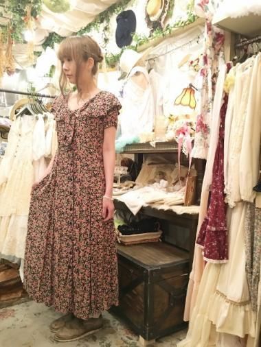 W-Germany 小花柄レトロブラックワンピース