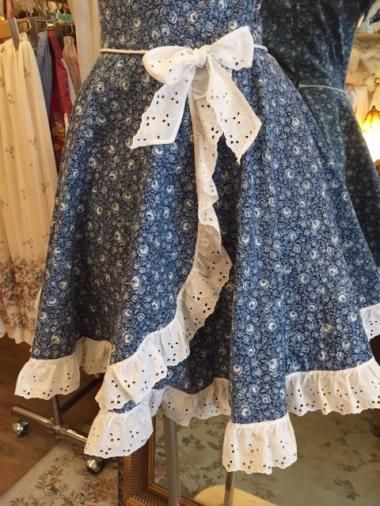Vintage ミニローズ刺繍コットンレースホワイトエプロン