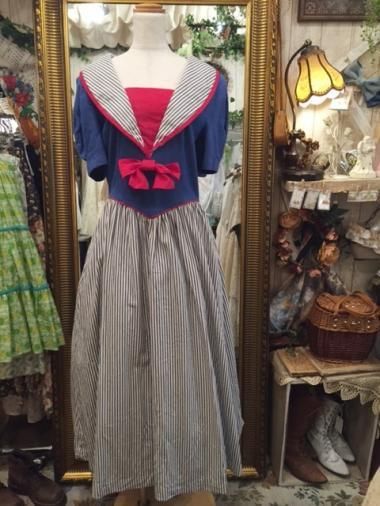 70'sアメリカヴィンテージのストライプ切替マリンデニムワンピースになります。