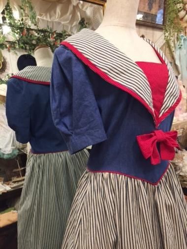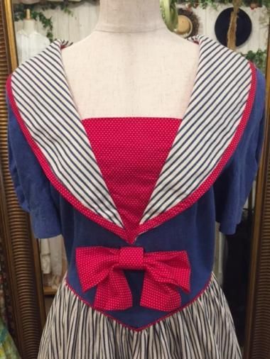 おおきな襟や赤いリボンがかわいらしい、マリンテイストのワンピースです。