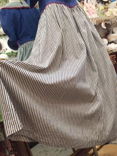 スカートがストライプ切替になっていたり、切替部分にはリボンと同じ赤ドットの生地が使われていたりと、凝ったデザインになっています。