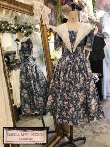 アメリカヴィンテージ JESSICA McCLINTOCK セーラーカラー花柄ワンピース Size:7/8 us8452