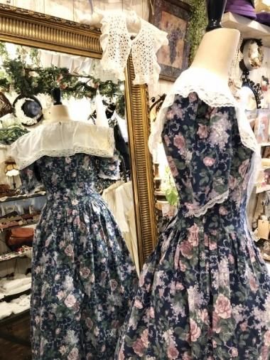 繊細でヴィクトリアンな花柄が魅力的なワンピースです。