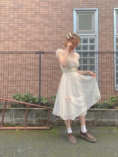 dentelle remake ふわふわホイップランジェリーレースホワイトワンピース
