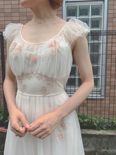 Vintage Nightie 刺繍入りシアーミディアム丈ワンピース