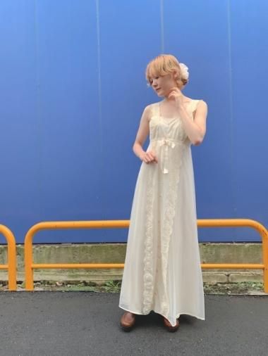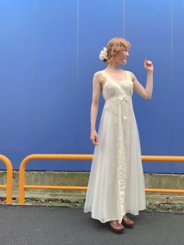Vintage Nightie 70's ハイウエストナイティワンピース オフホワイト us9820