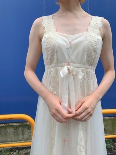 Vintage Nightie 刺繍入りシアーミディアム丈ワンピース