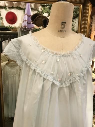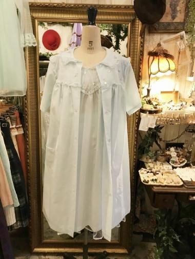 Vintage Nightie 70's ナイティコットンミディ丈ワンピース ライトブルー us91014