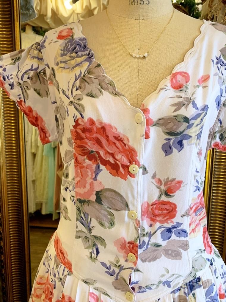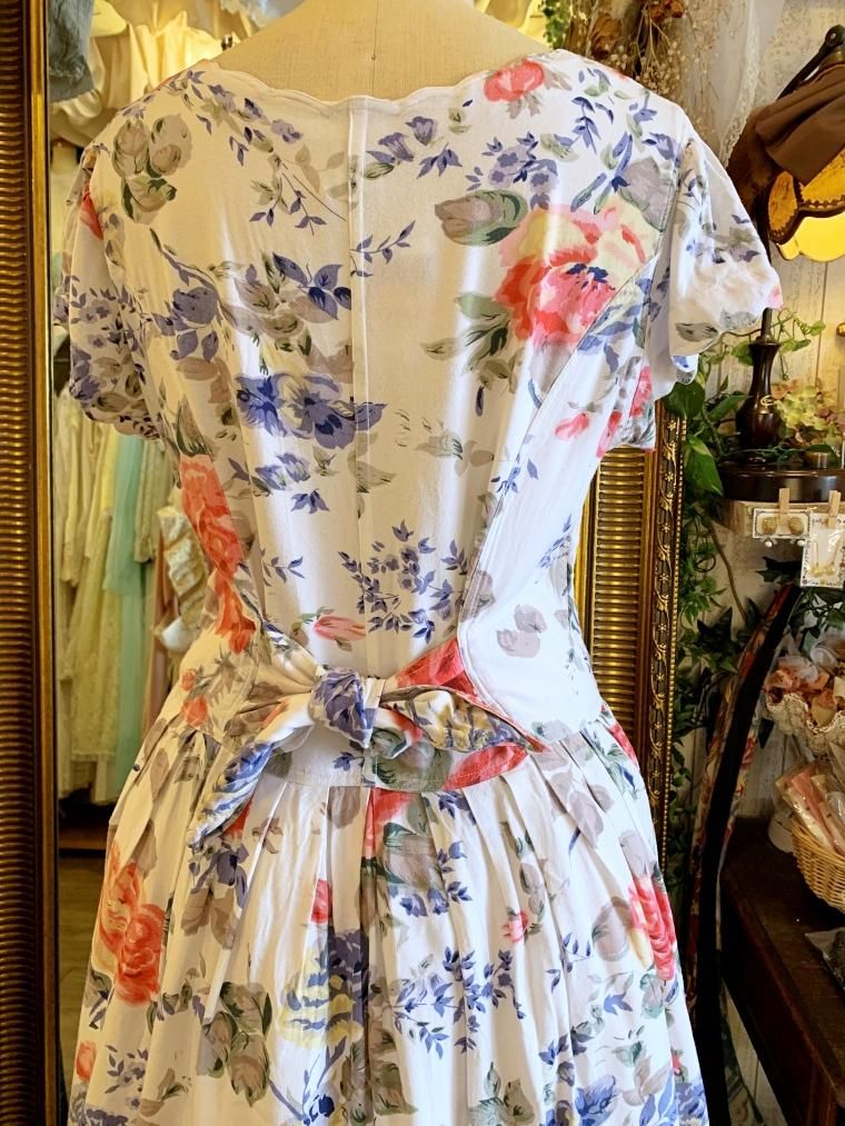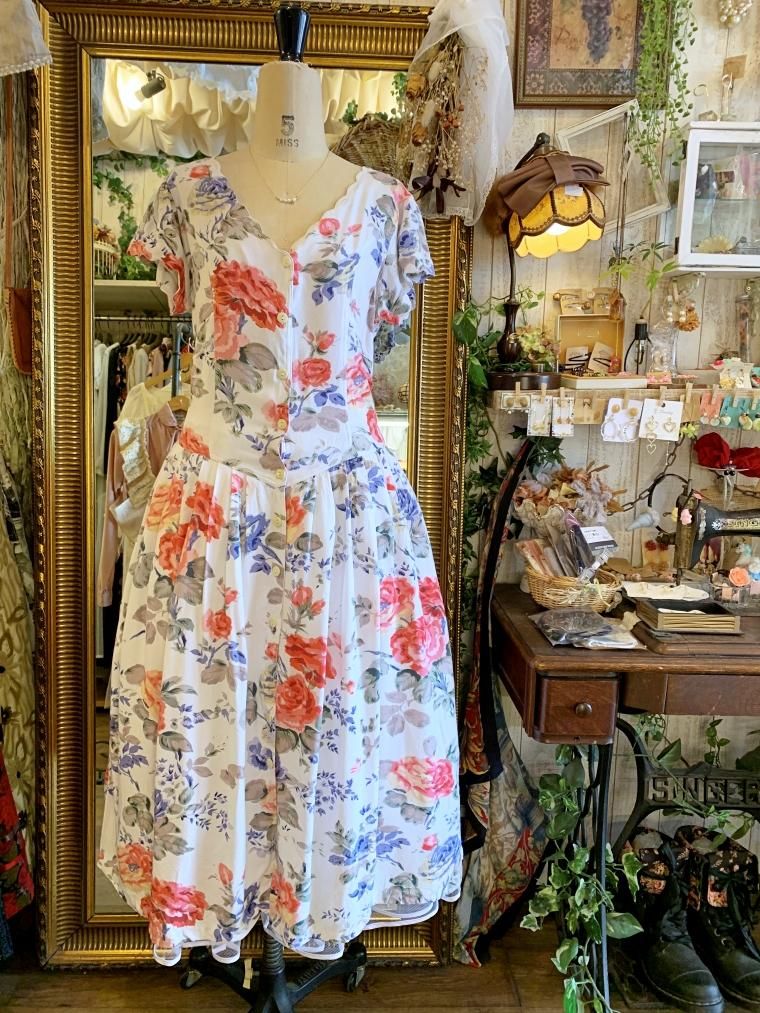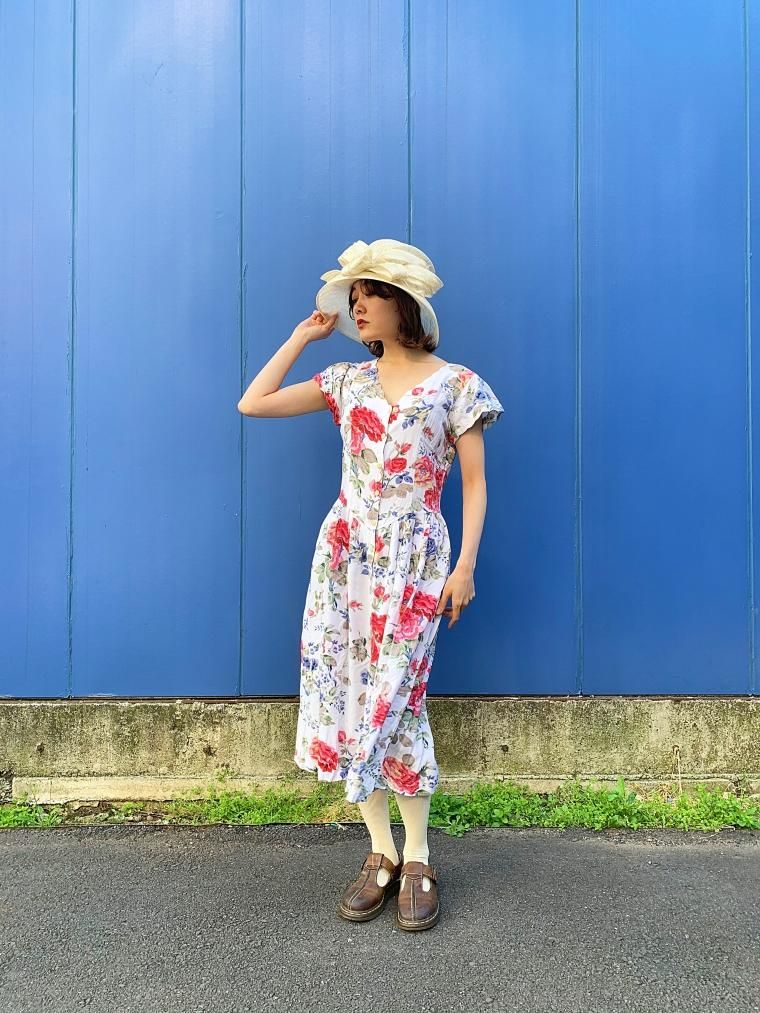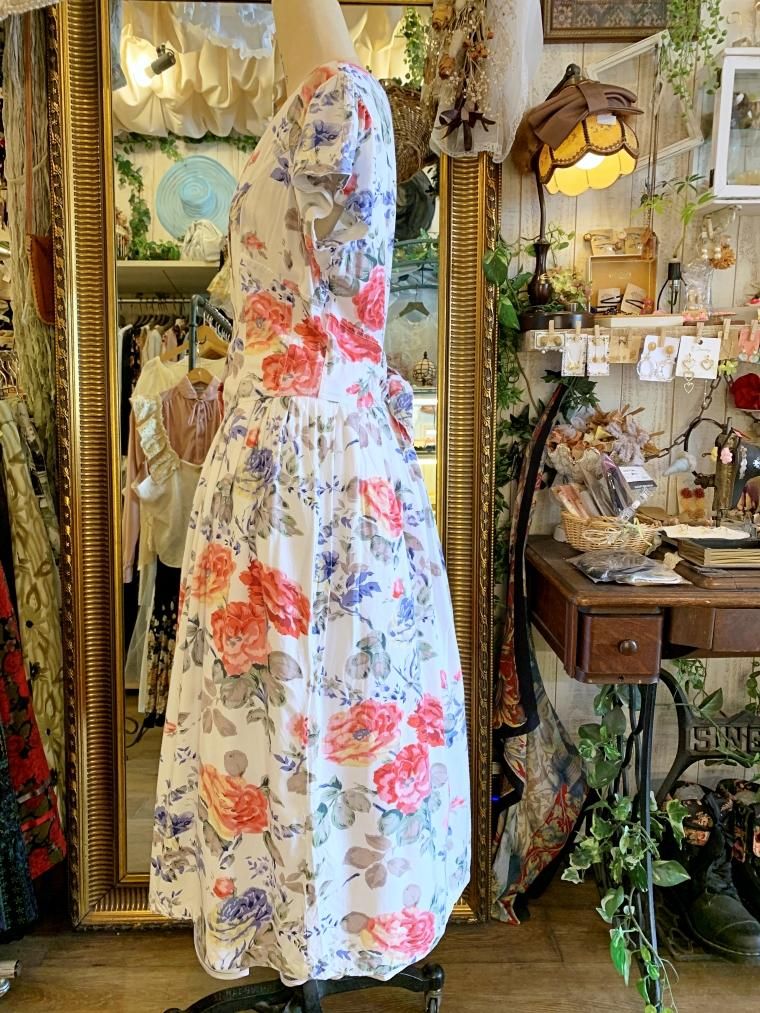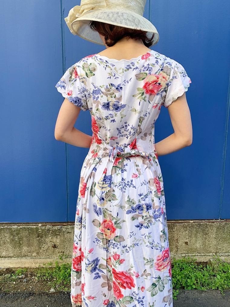 vintage U.S.A. ホワイトカラーフローラルレーヨンワンピース