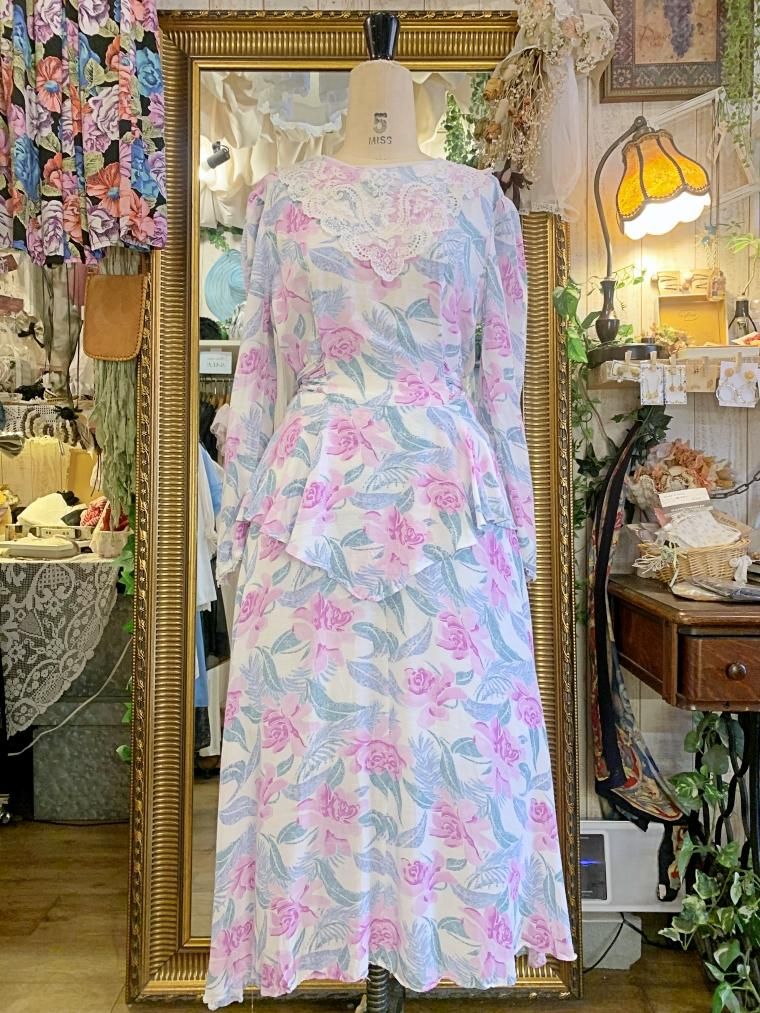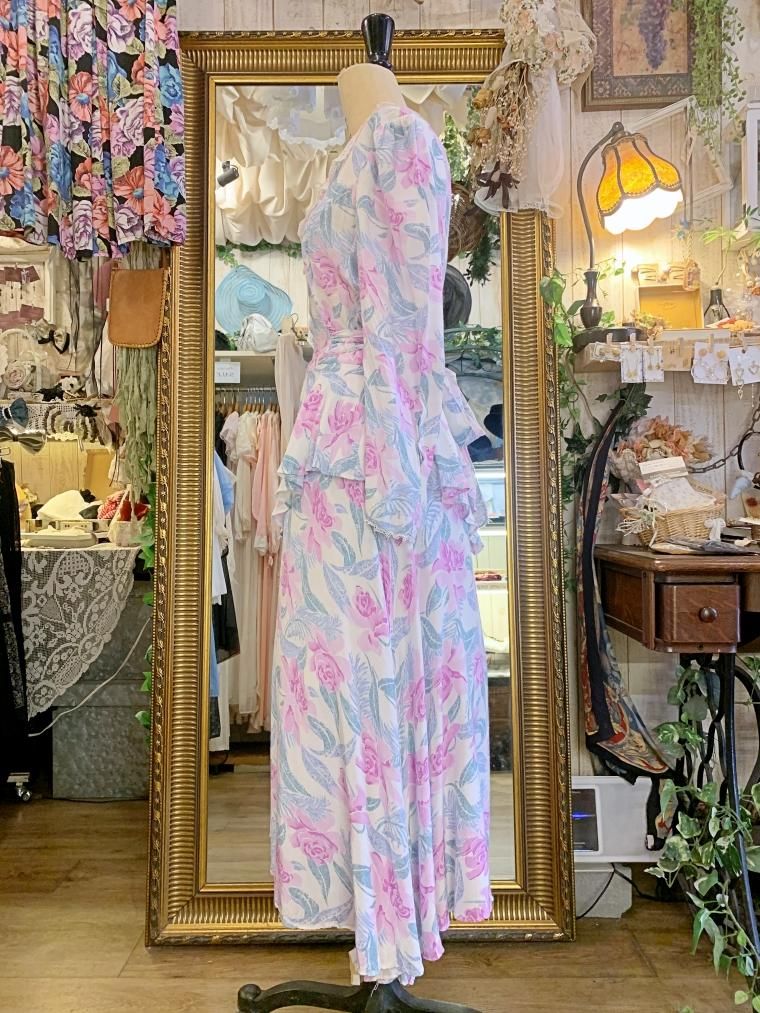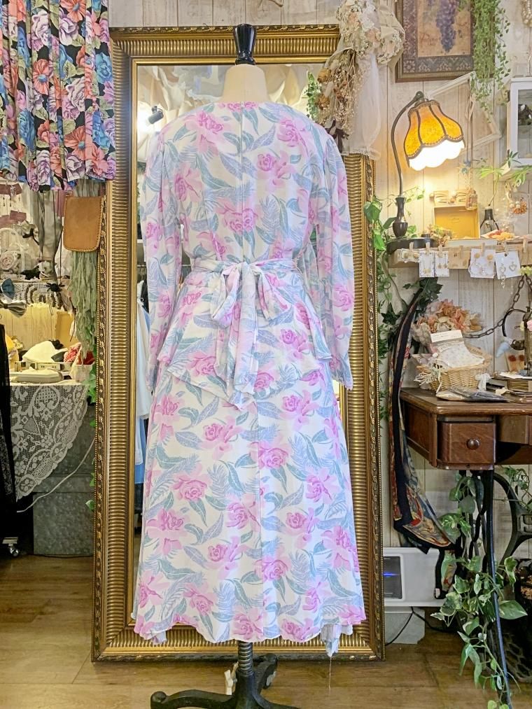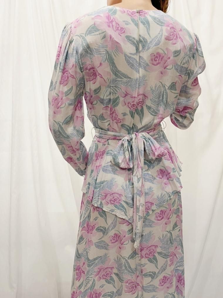 ビンテージ 70's花柄レーヨンペプラムワンピース Size 7/8 31412