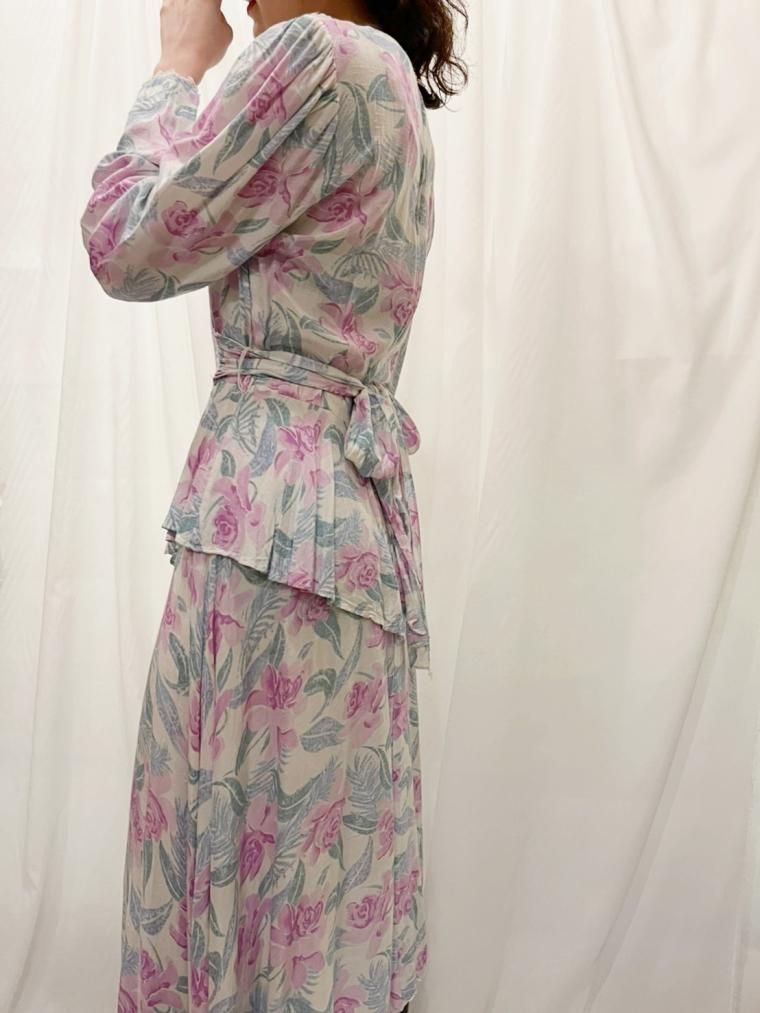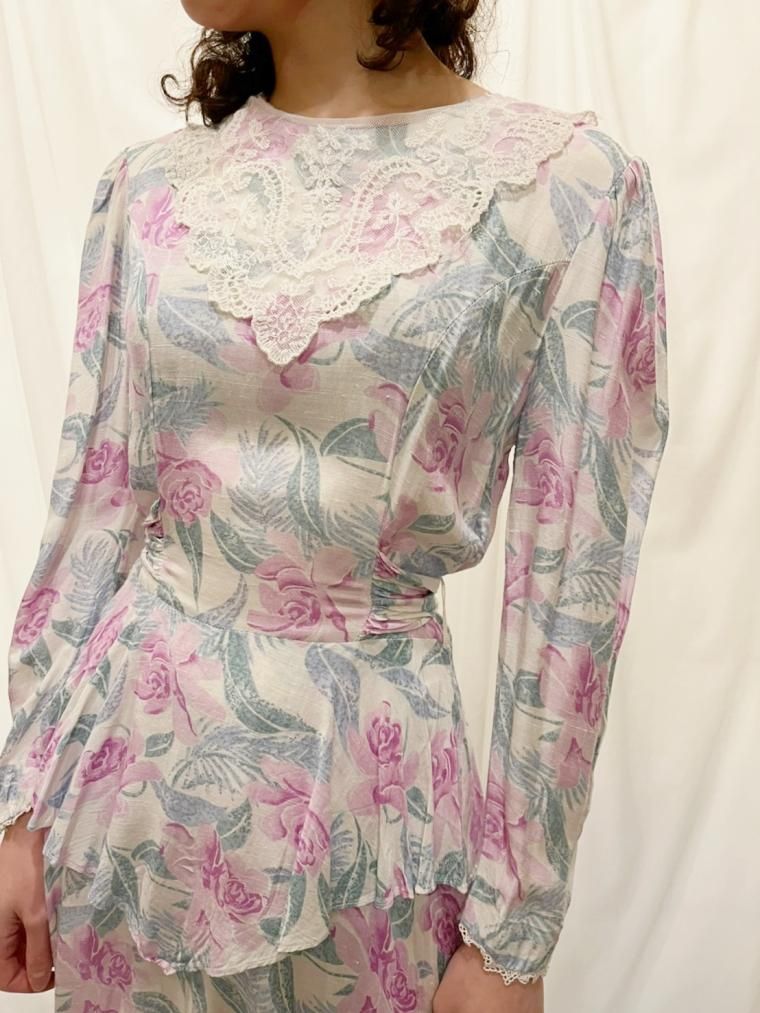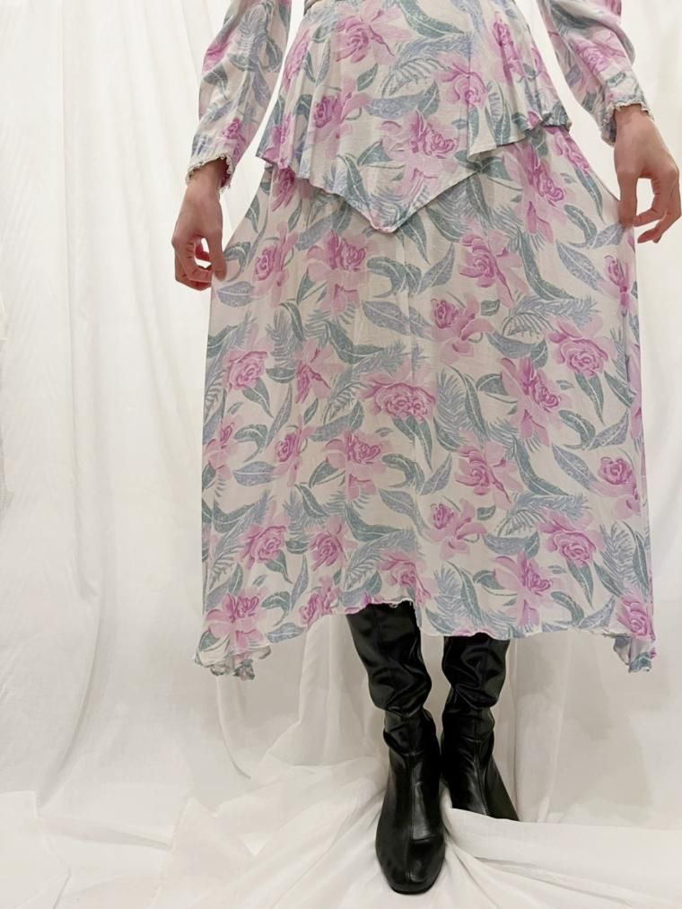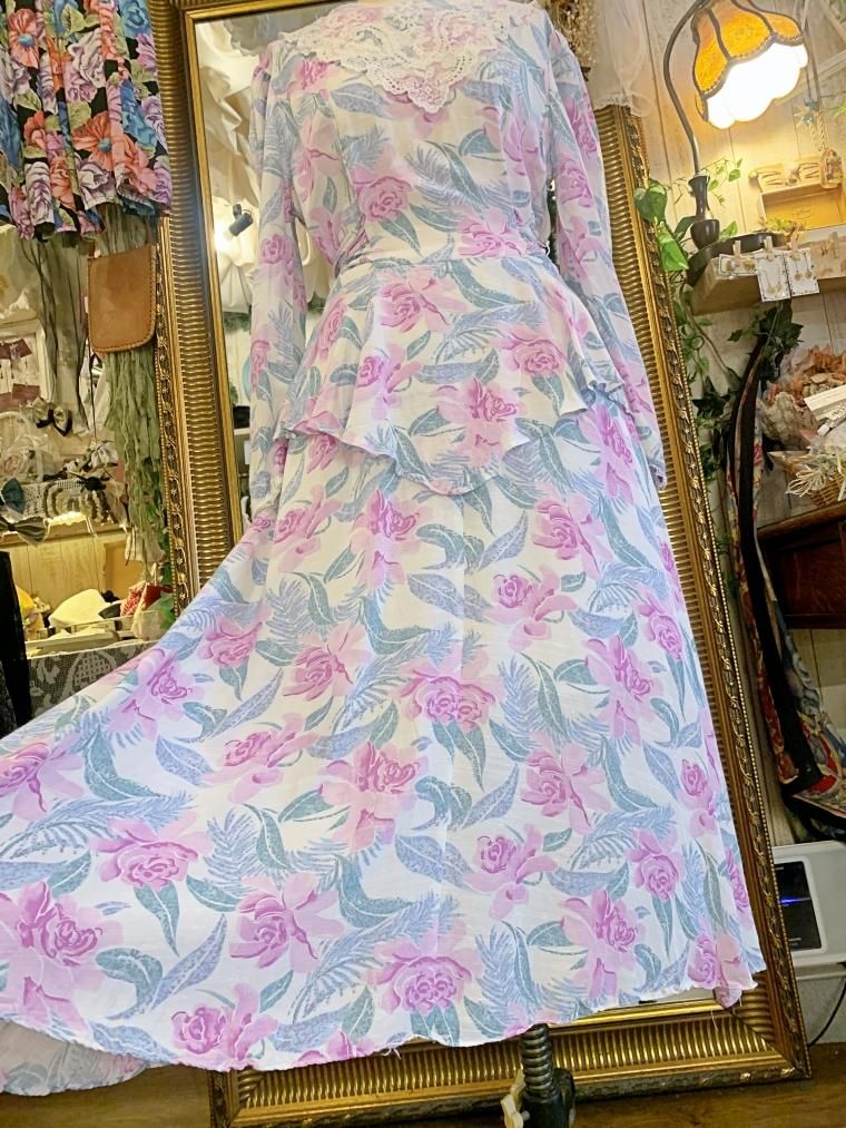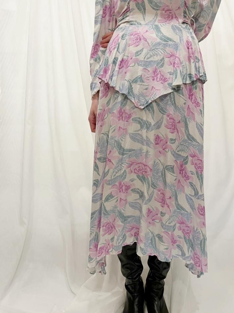 ビンテージ 70's花柄レーヨンペプラムワンピース Size 7/8 31412