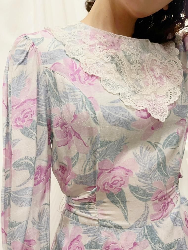 vintage U.S.A. レースカラーレーヨンオフホワイトワンピース