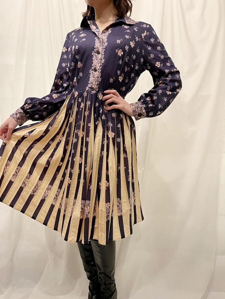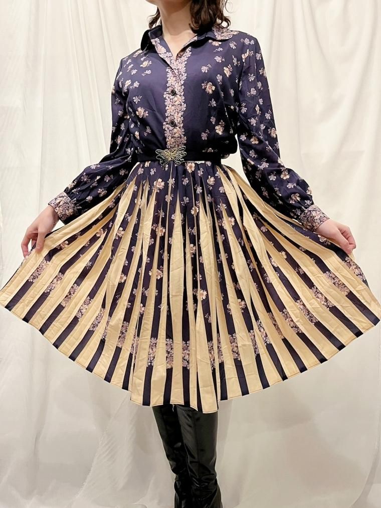 Vintage オープンカラープリーツワンピース Size 42 21210d