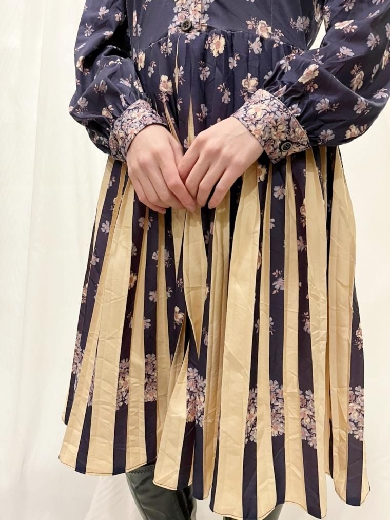 ガーリーなプリーツデザインが魅力的なワンピースです。