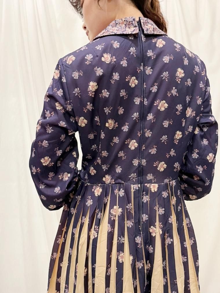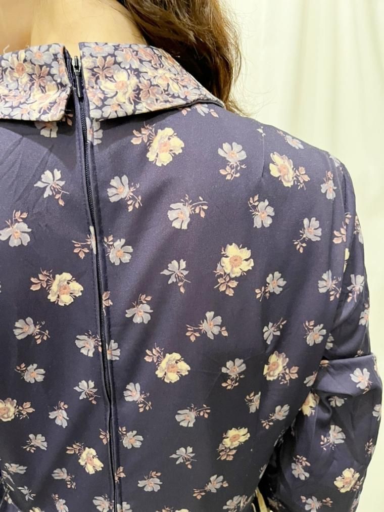 vintage U.S.A. ホワイトカラーリボン付きフローラルブラックワンピース
