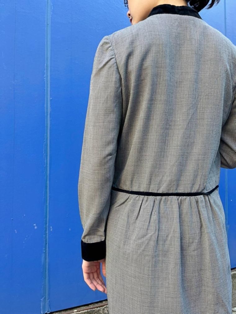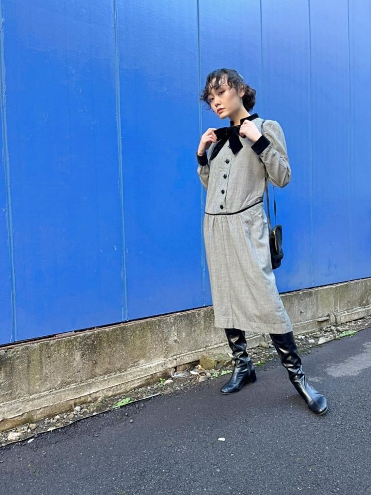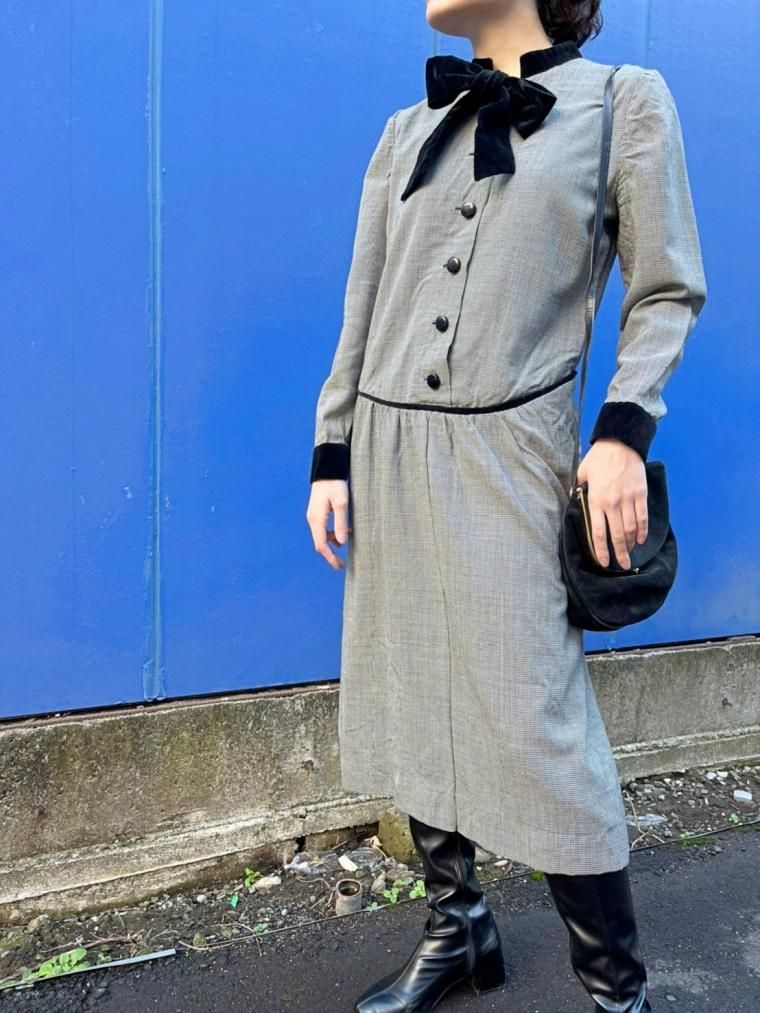 Vintage ベロアリボンタイレトロワンピース Size 約M 21238d