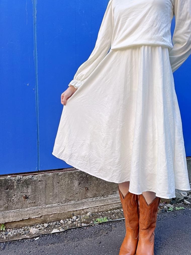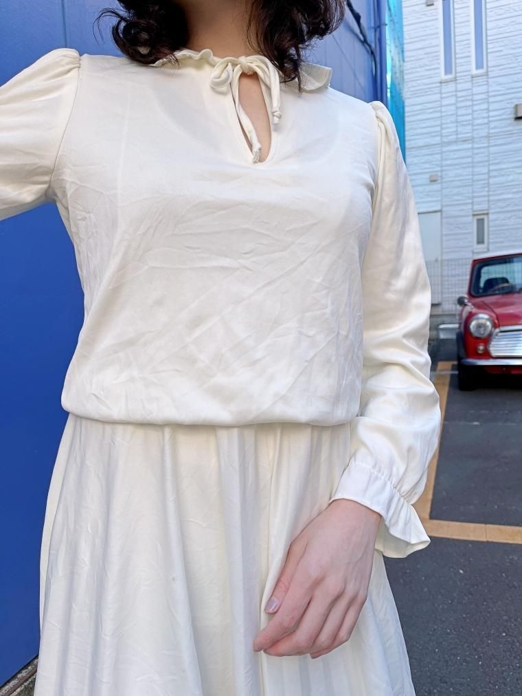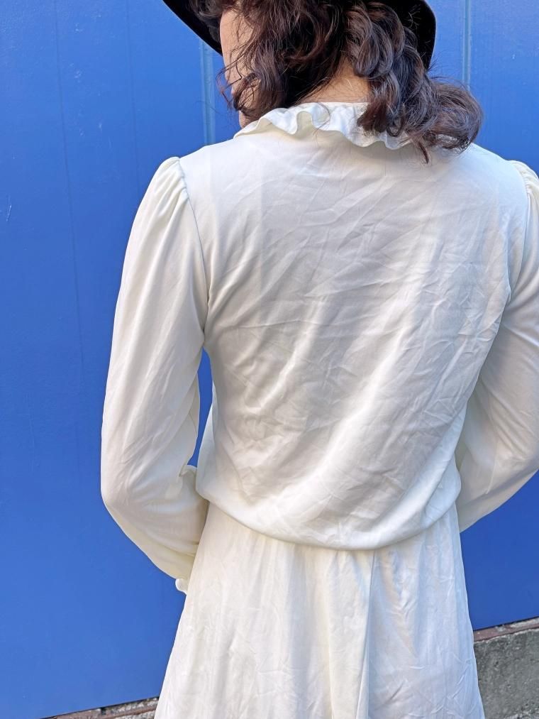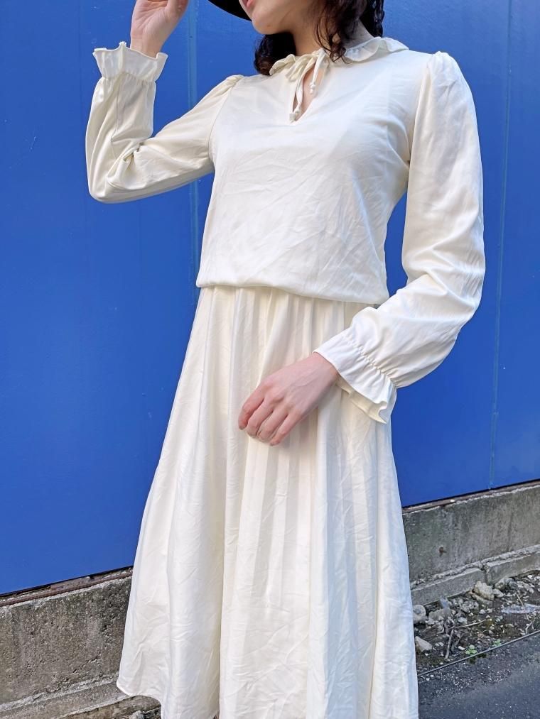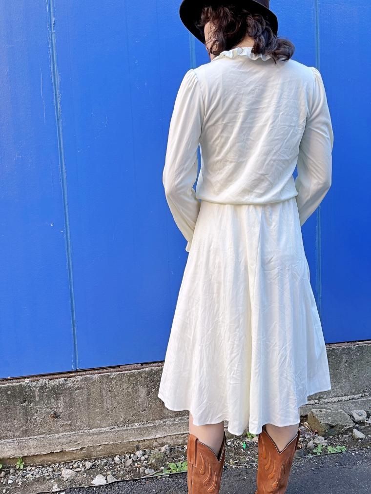 Vintage フリルカラーレトロホワイトワンピース Size 約S〜M 2123d