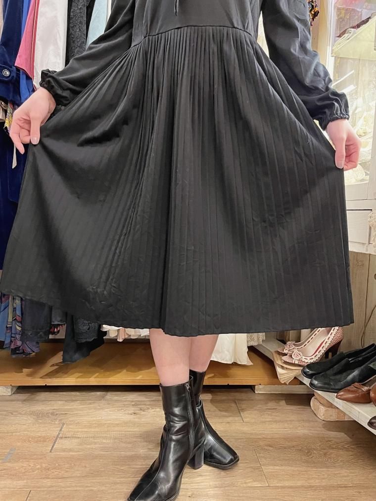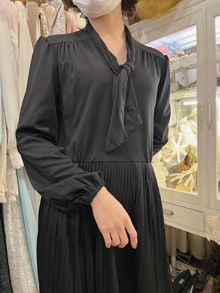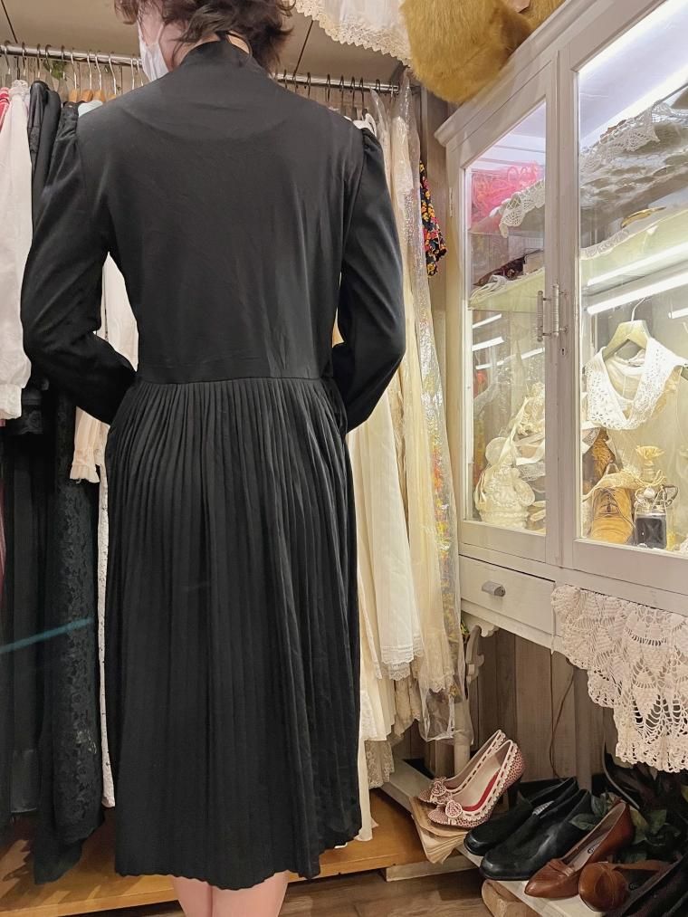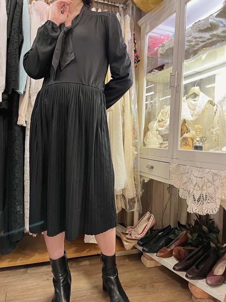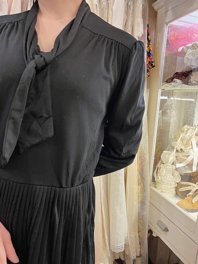 ビンテージ リボンタイプリーツワンピース size約M 21216d