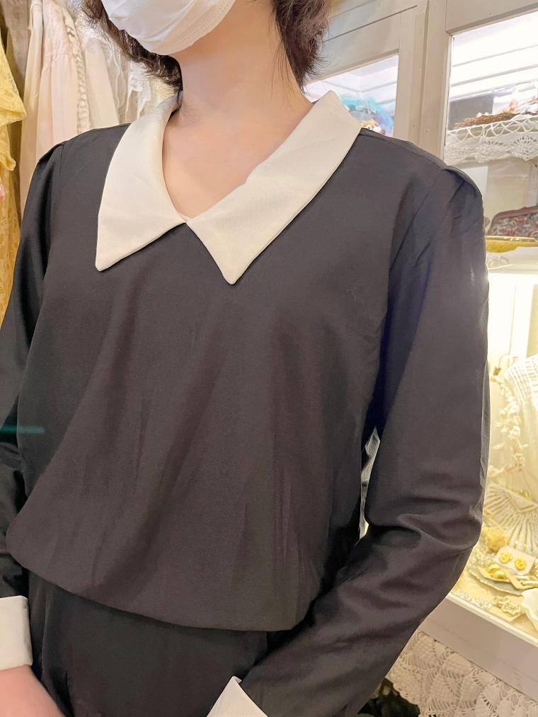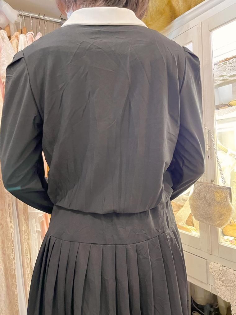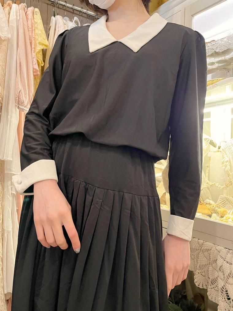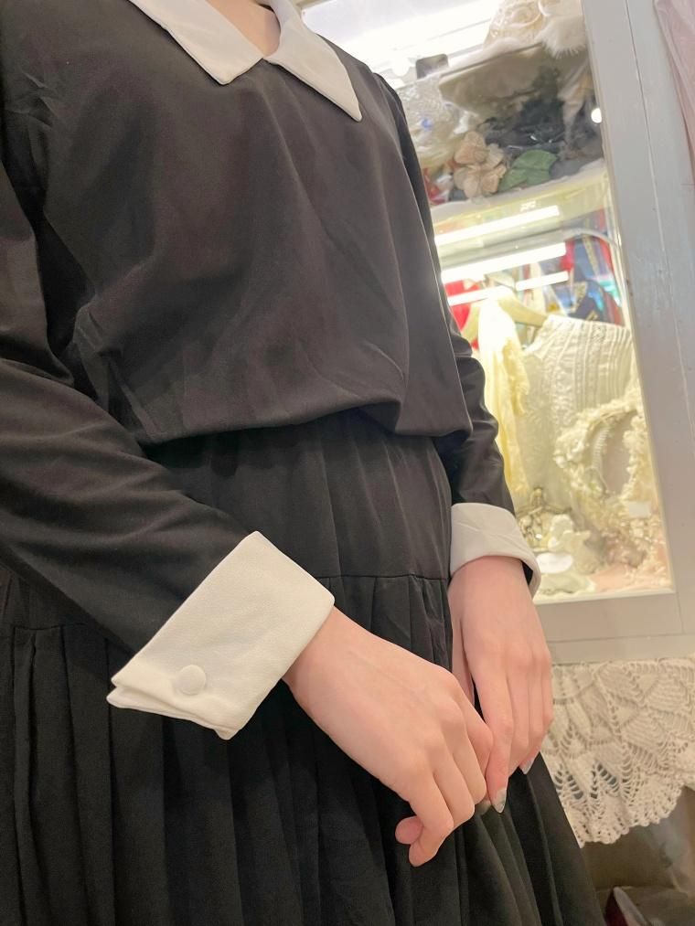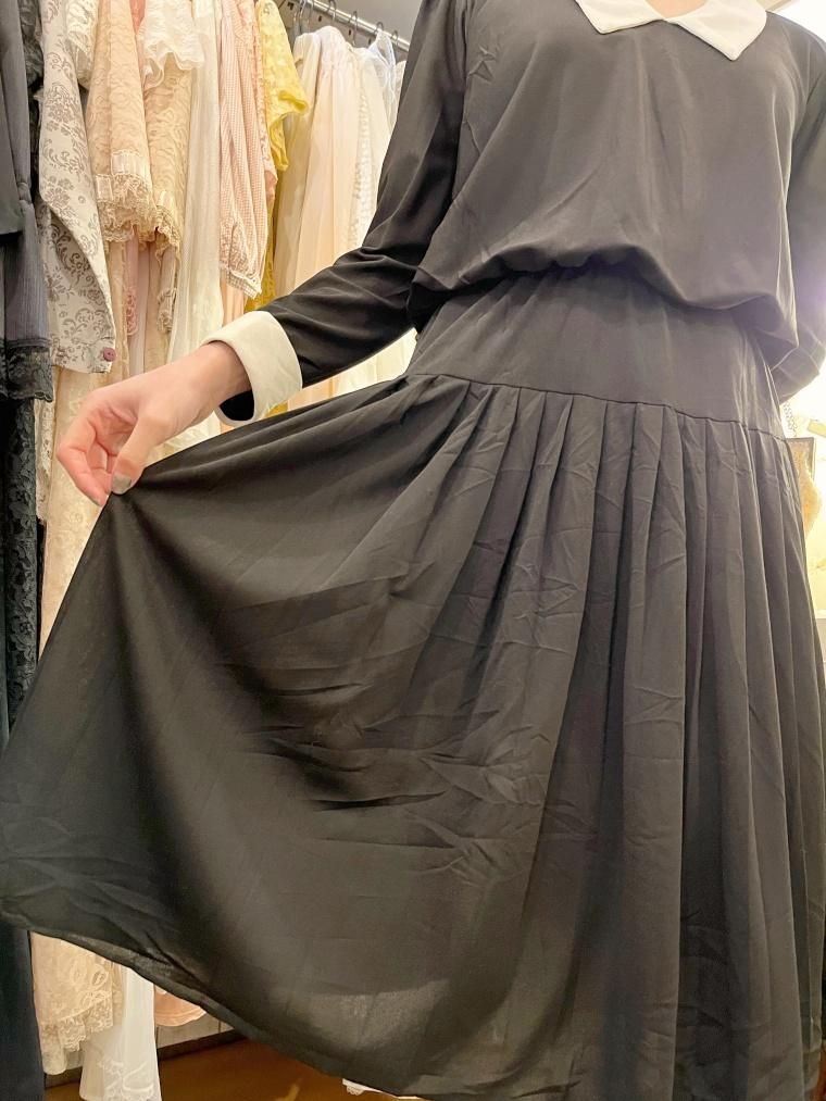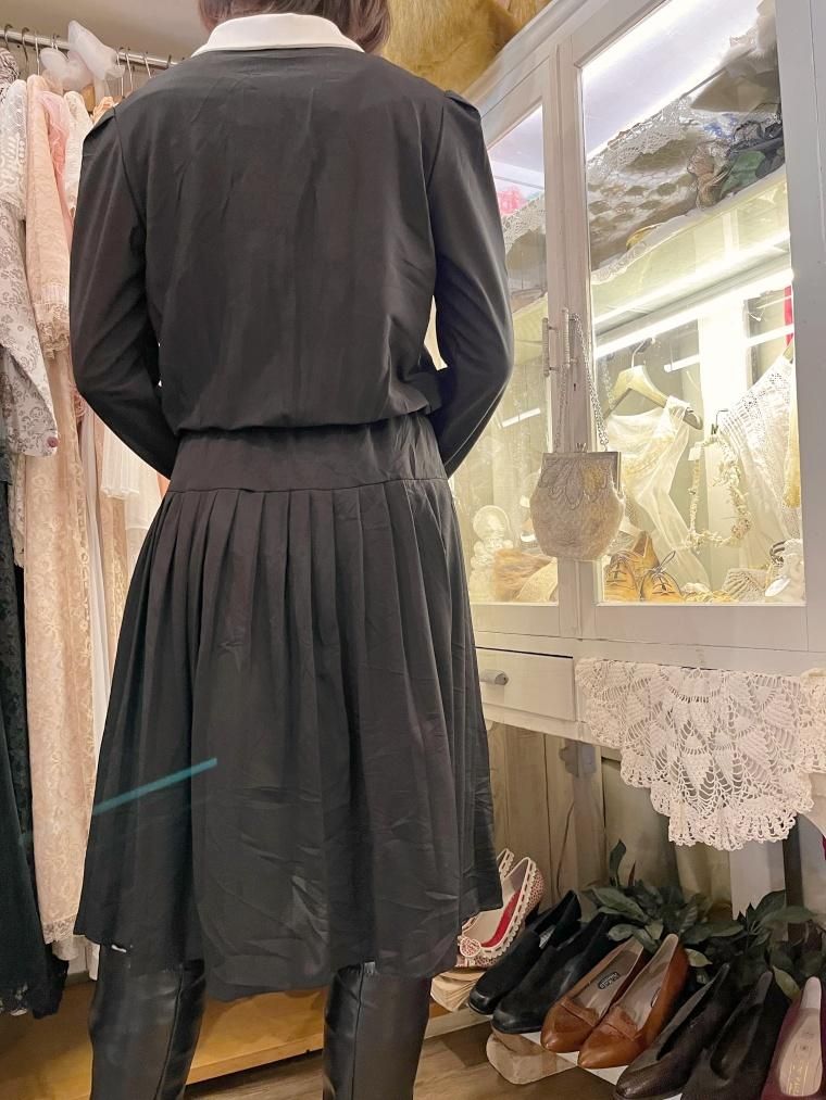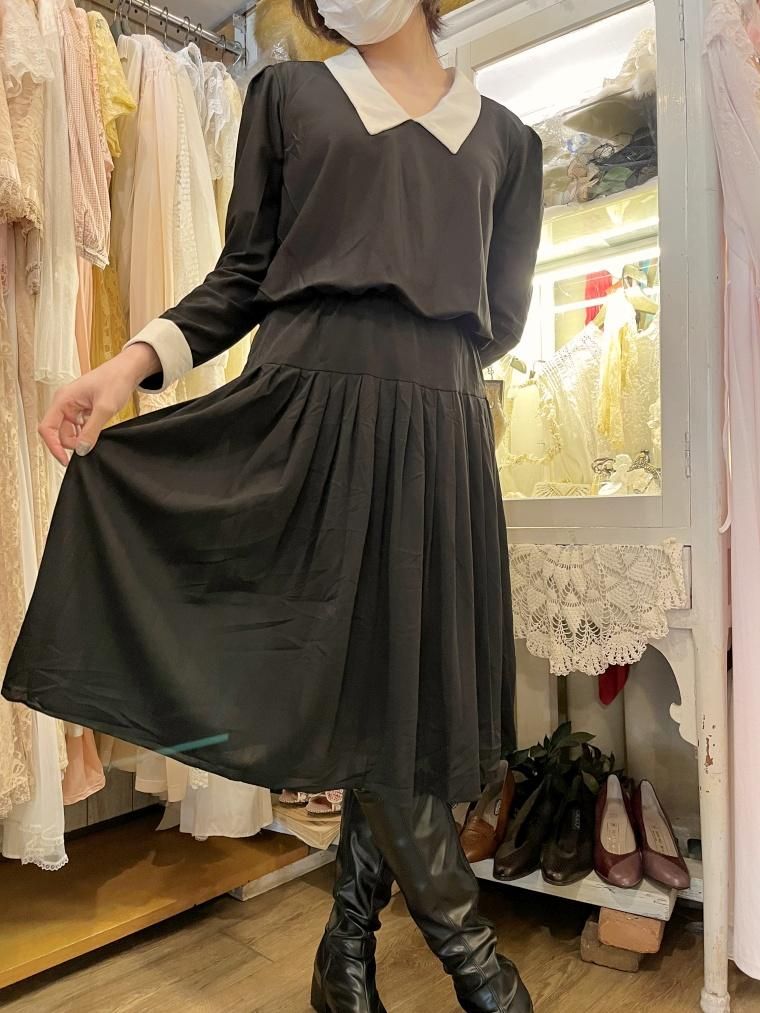 ビンテージ ブラックバイカラープリーツワンピース 21223d