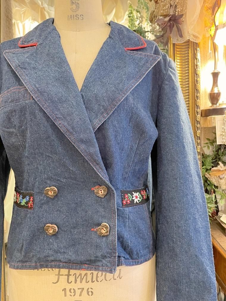 大きなカラーとハートのチロルボタンがガーリーなデザインです。