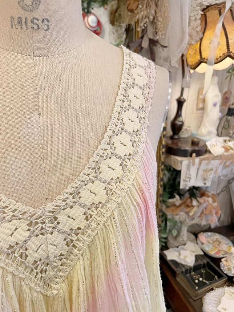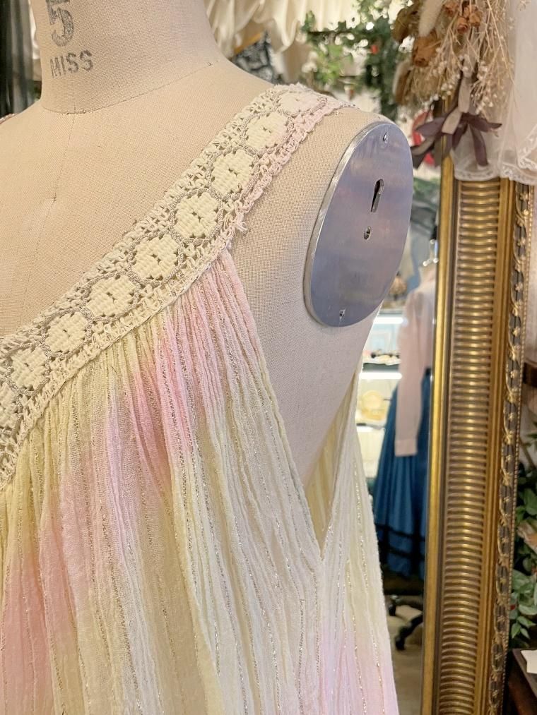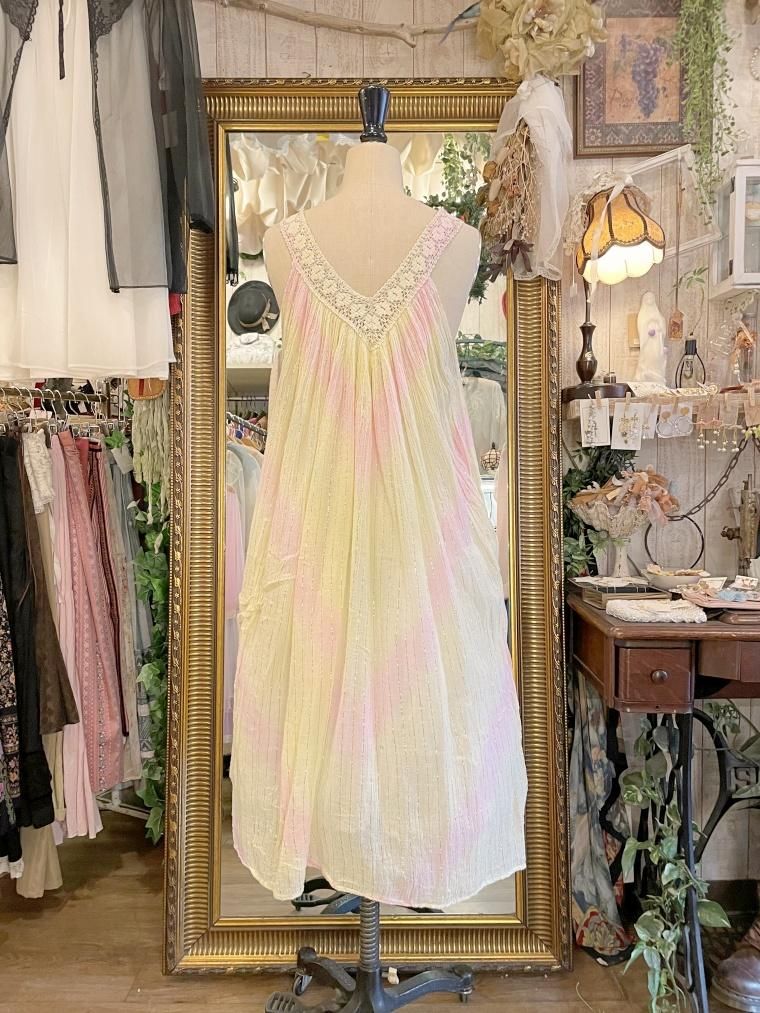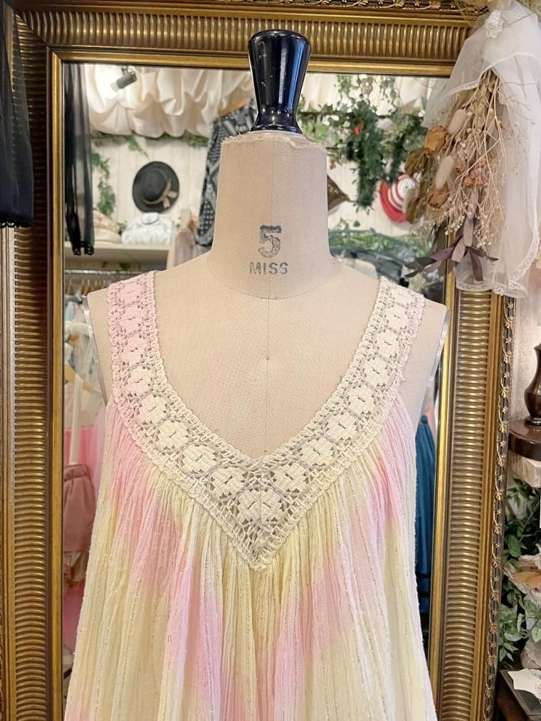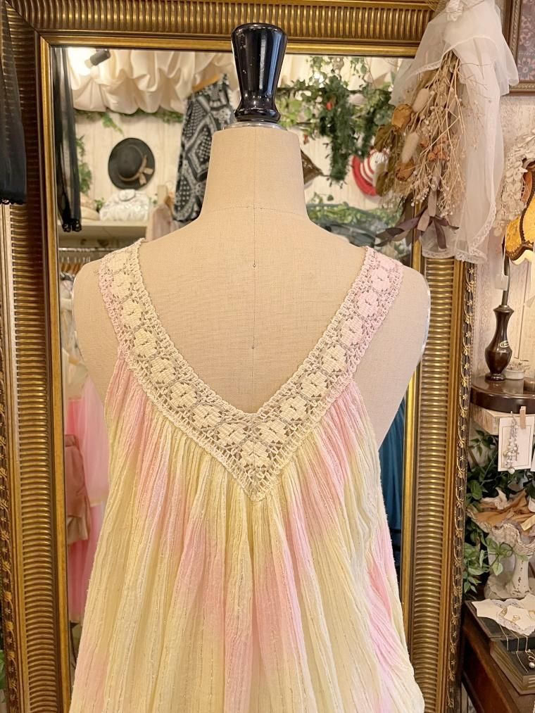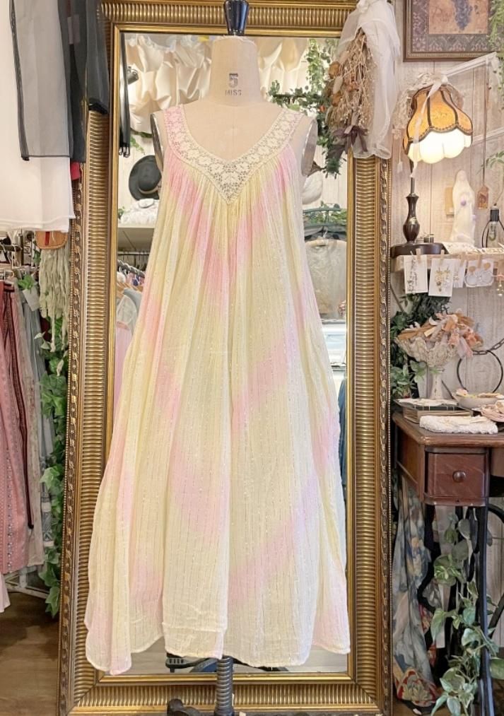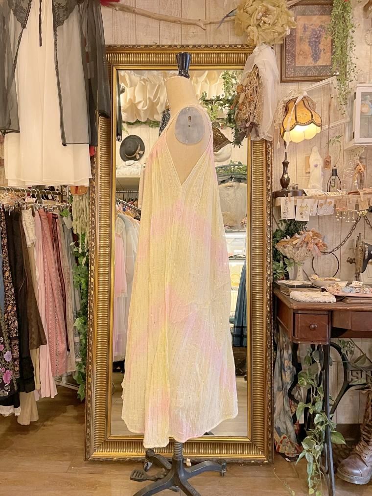 ビンテージ ペールイエローグラデーションギリシャワンピース Size free 23kk128