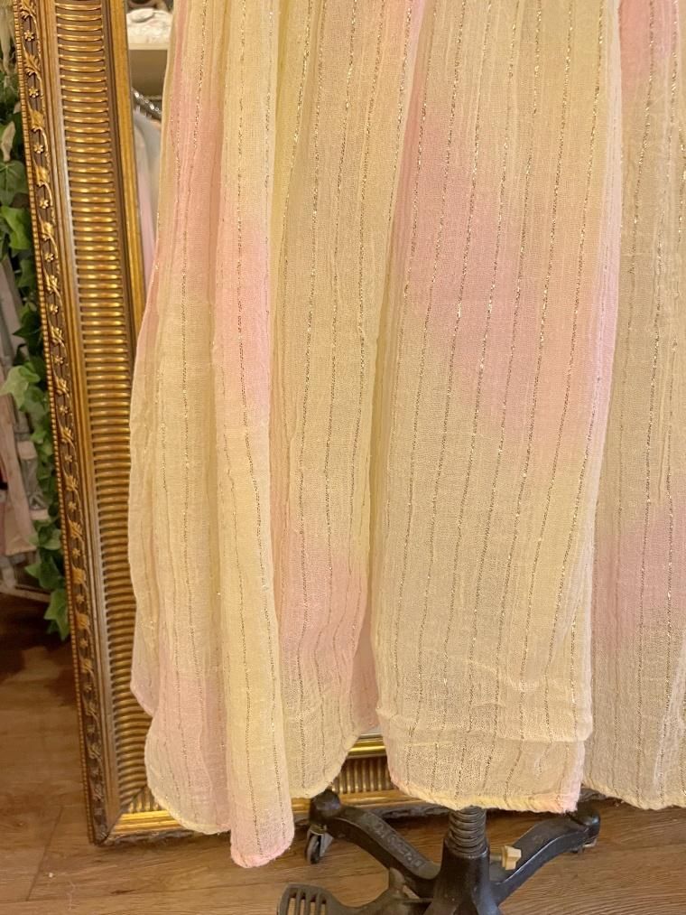 ゴールドラインがストライプ状に装飾されたふわっと広がるデザインです。