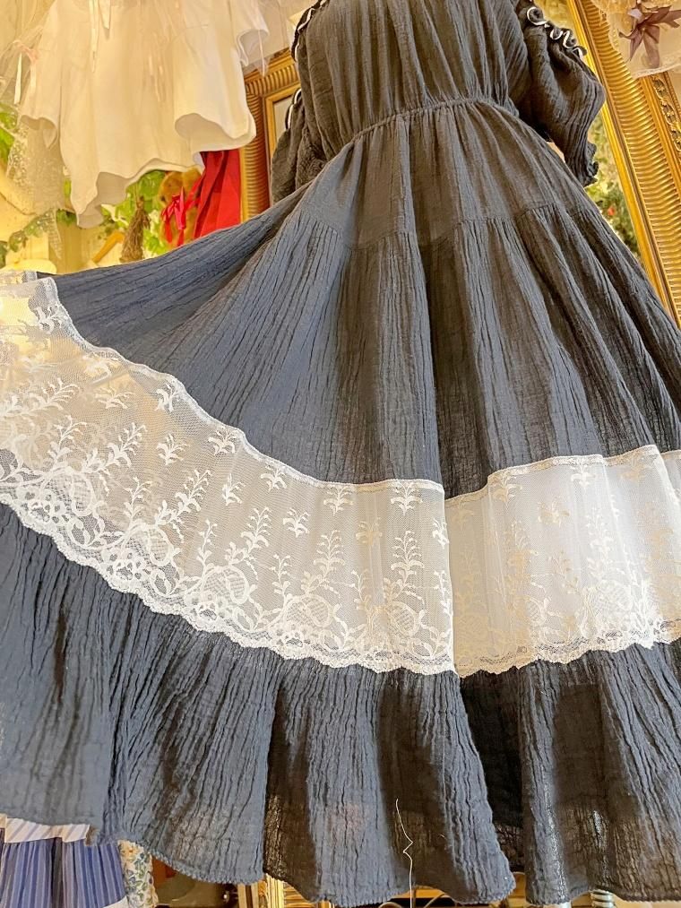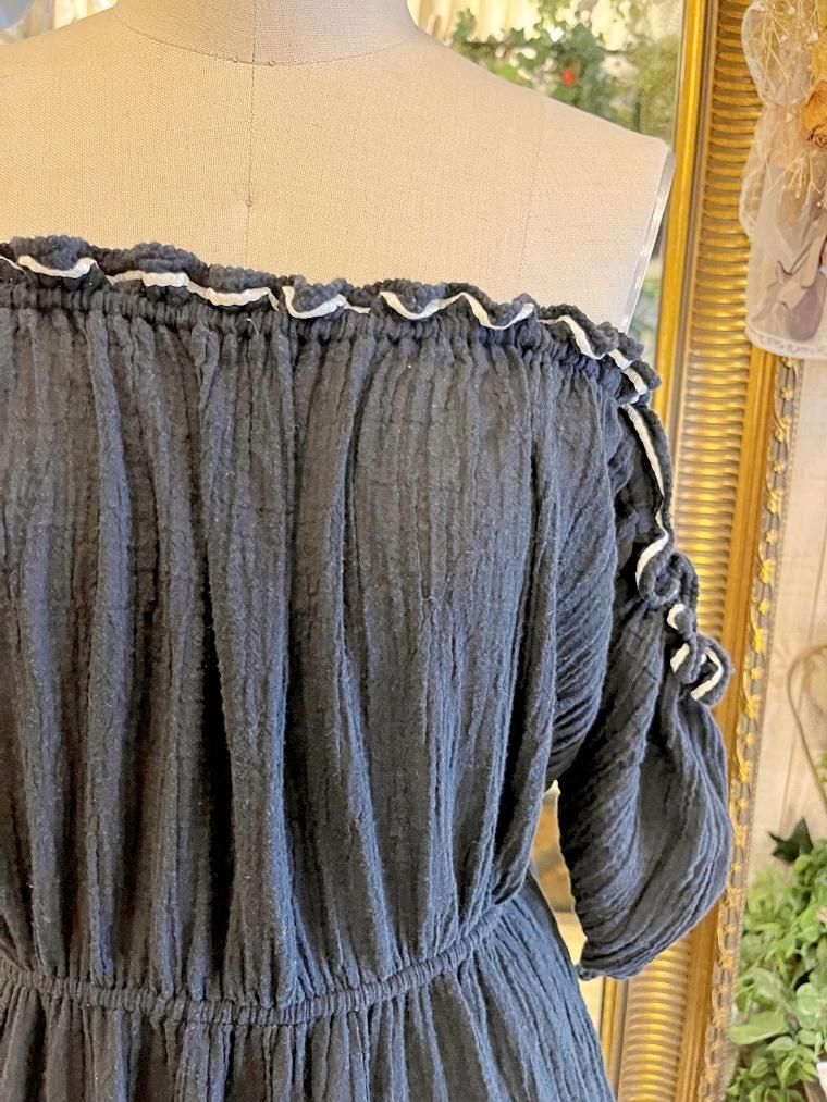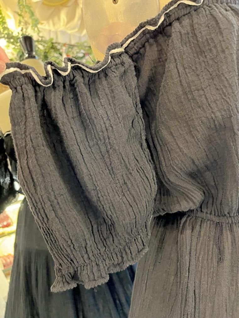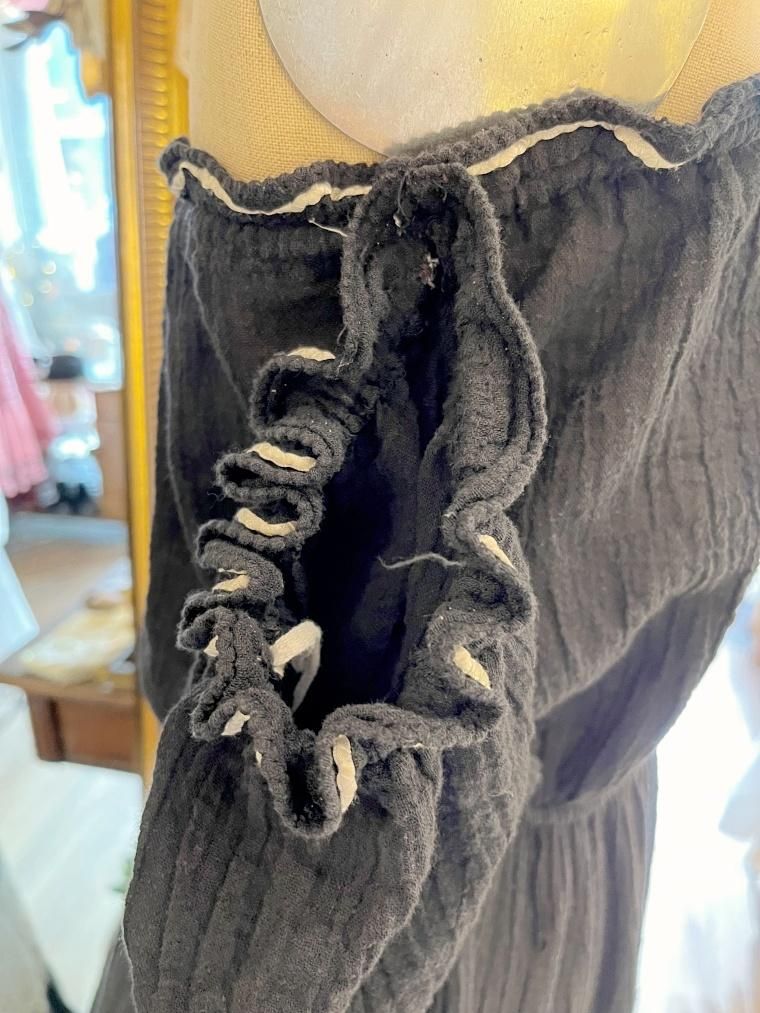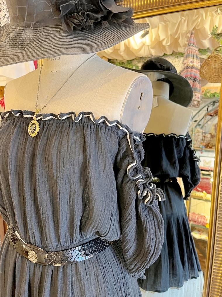 Vintage レース切り替えオフショルブラックワンピース 23kk085