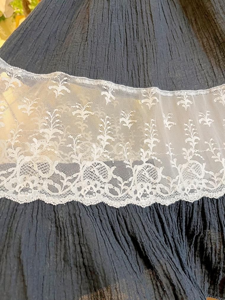 Vintage 裾レースコットンフレアブラックスカート