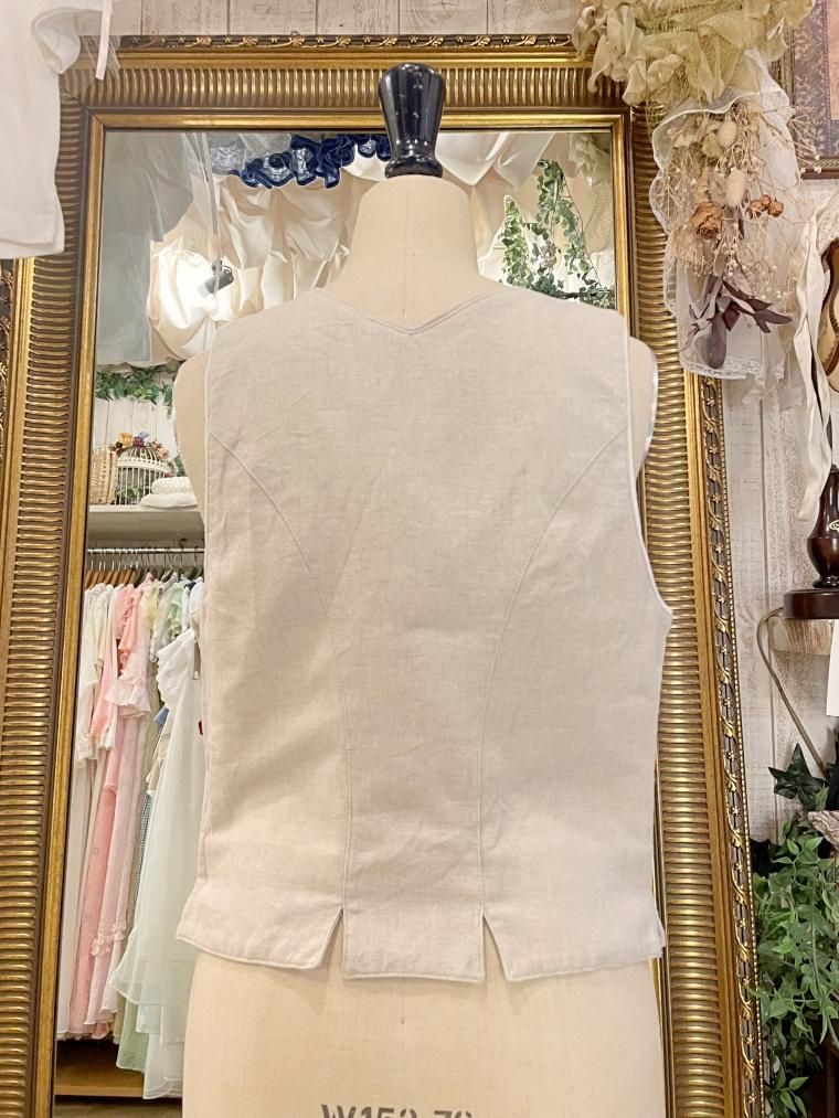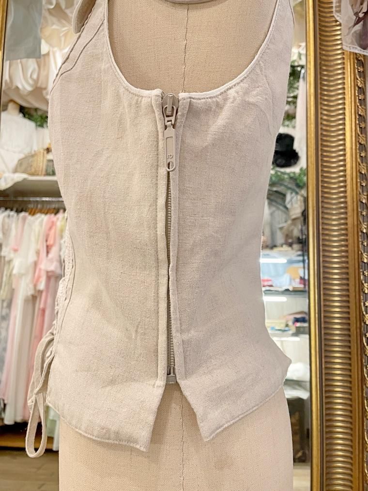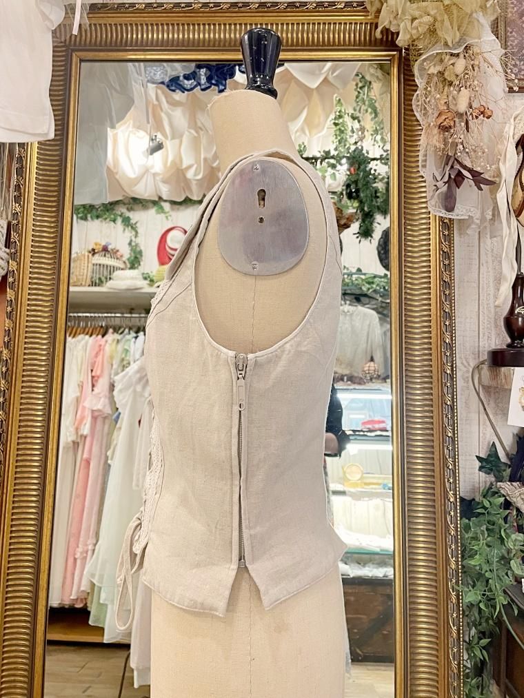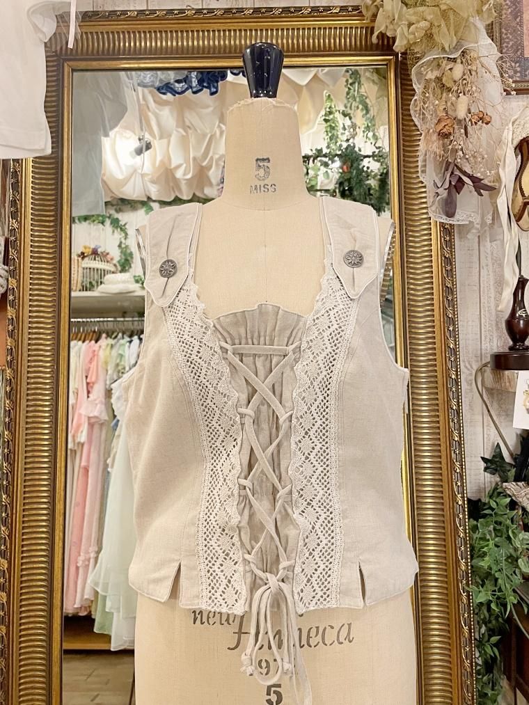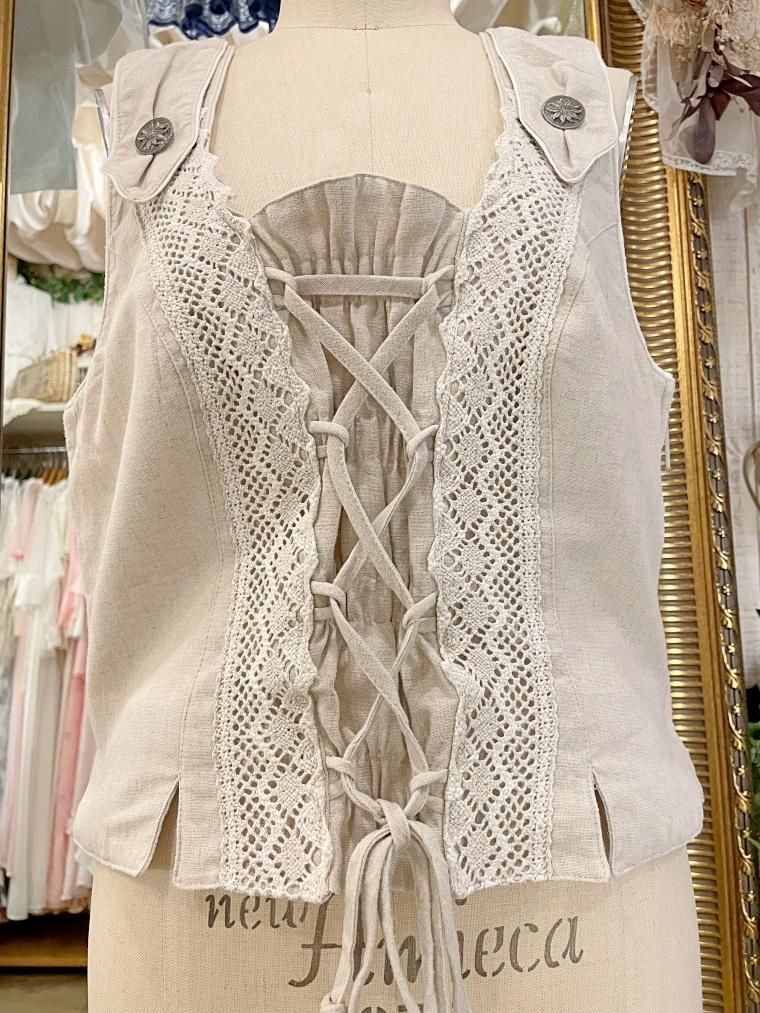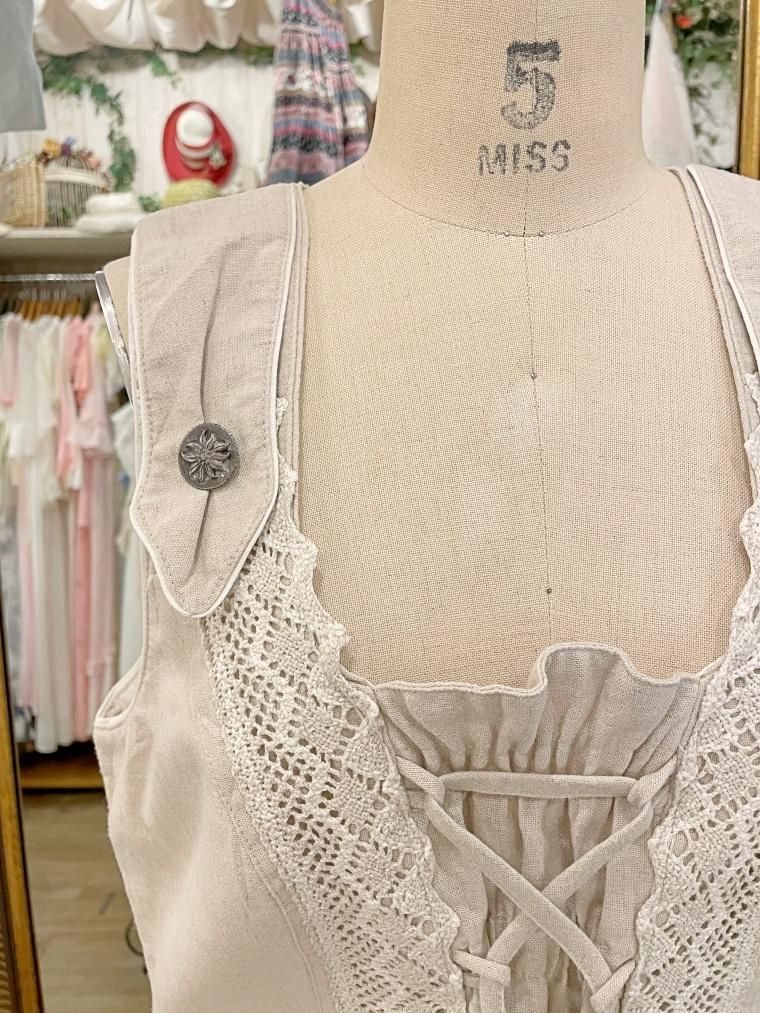 Vintage リネン混レースアップチロルベスト 23458