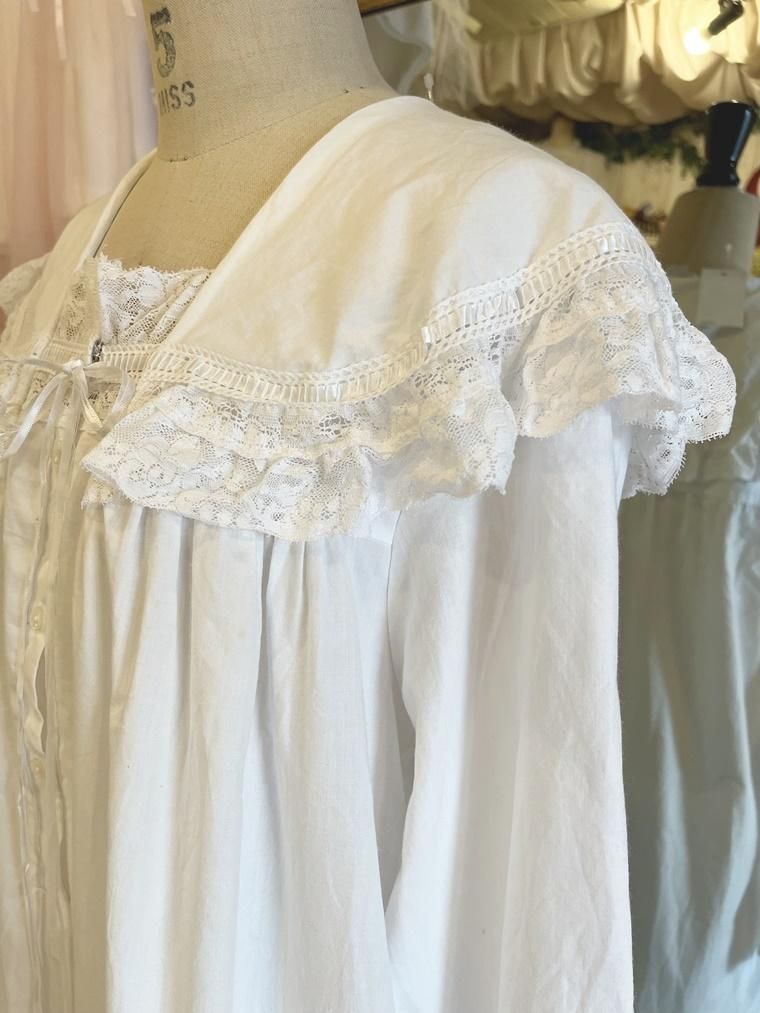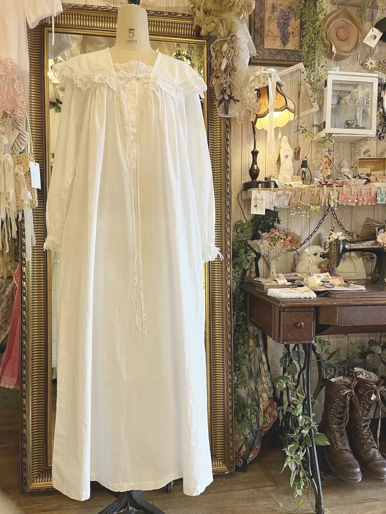 Vintage ビッグカラーホワイトコットンワンピース 23508