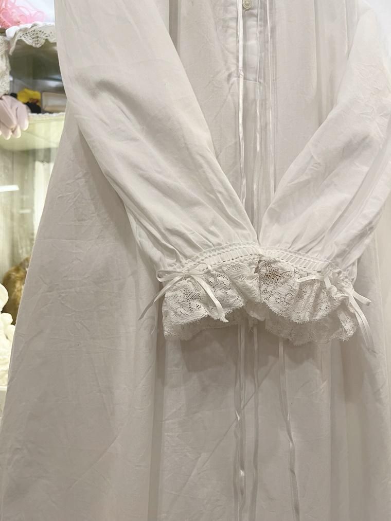 vintage nightie 60s リボンレースロマンチックロングガウン オフホワイト