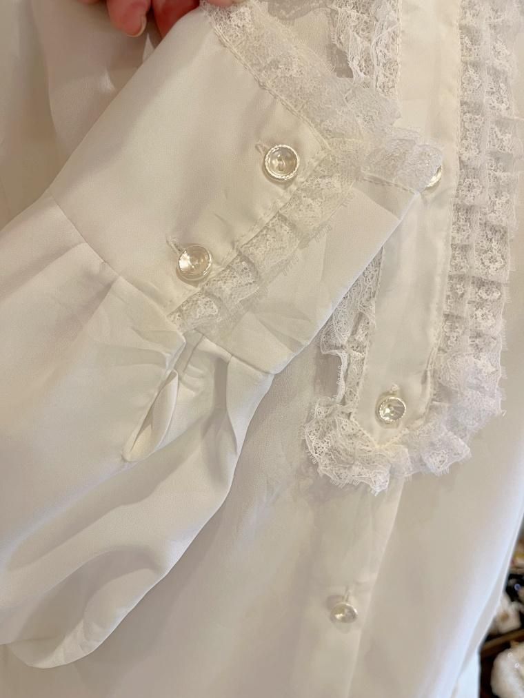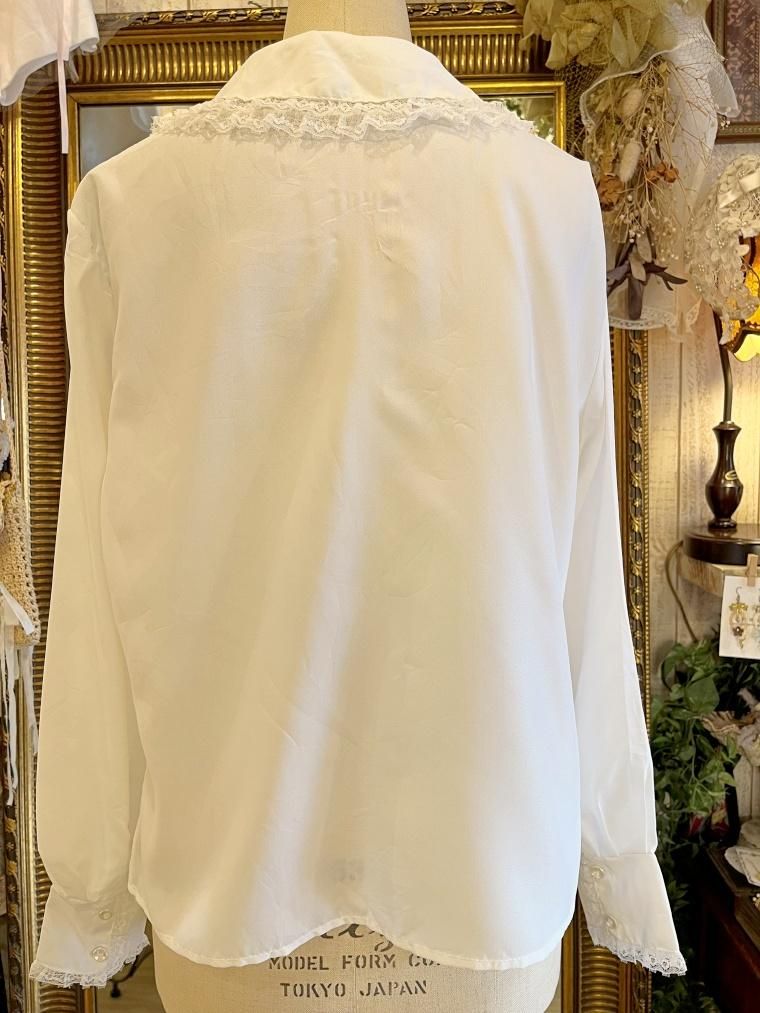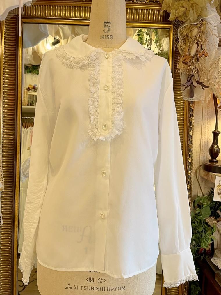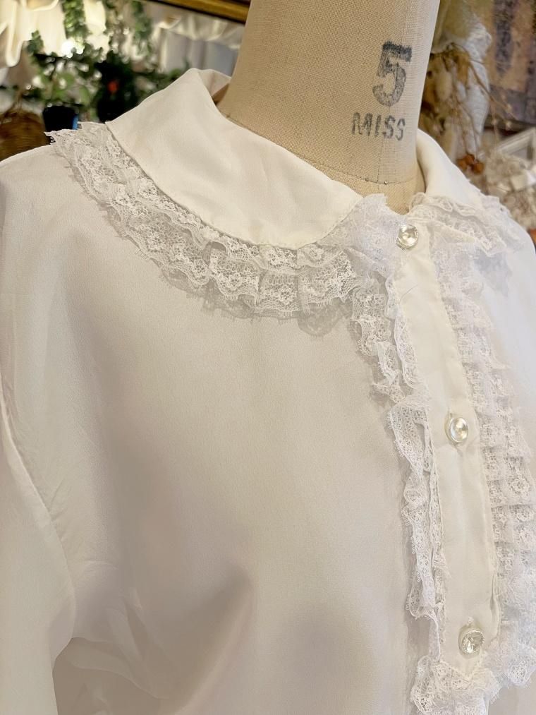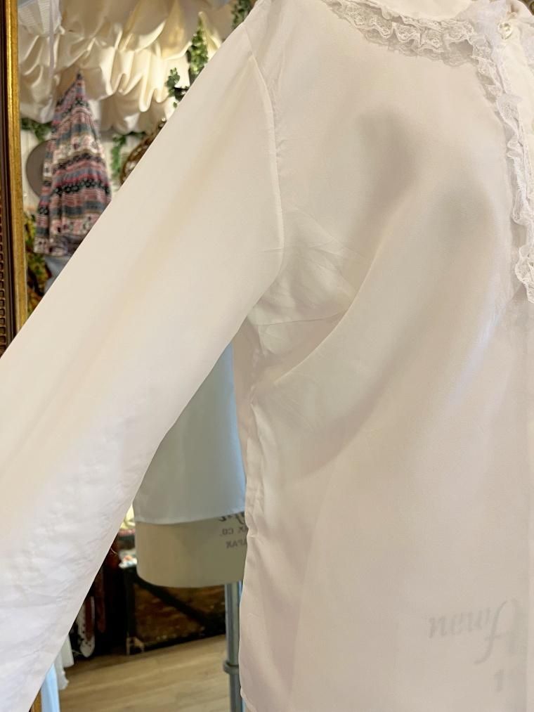 Vintage 丸襟レースホワイトシアーブラウス 23510