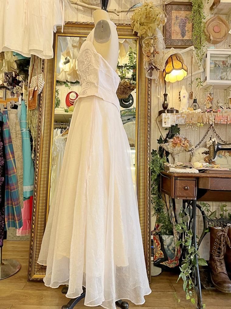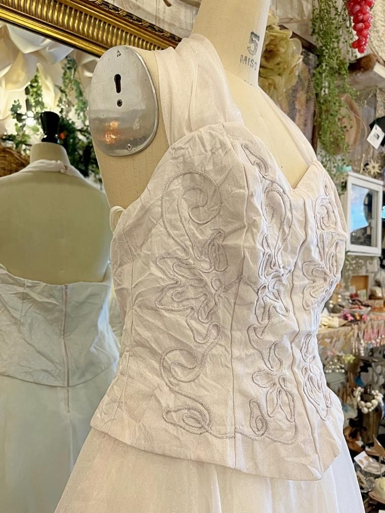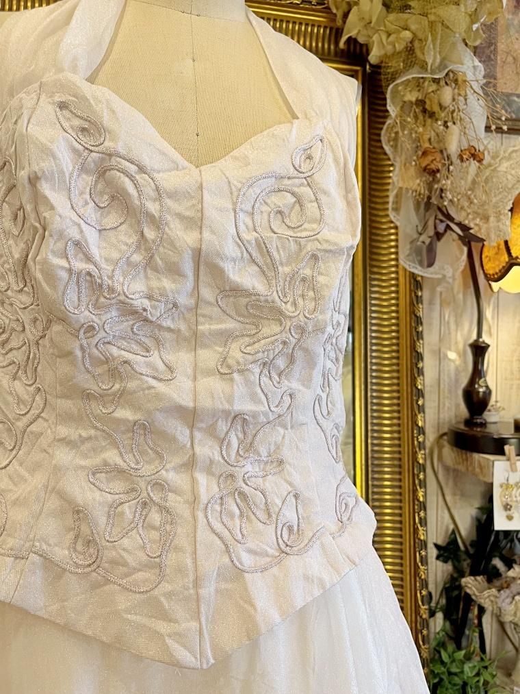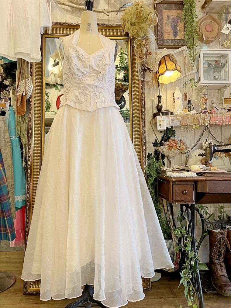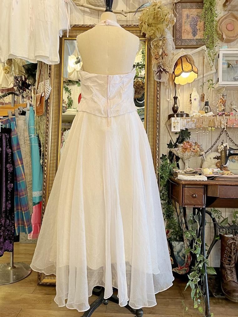 Vintage コード刺繍ホルターネックオーガンジードレス 23475