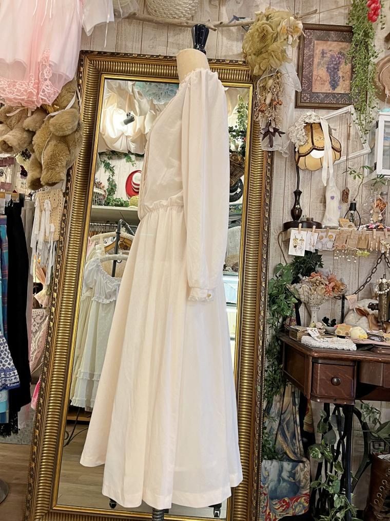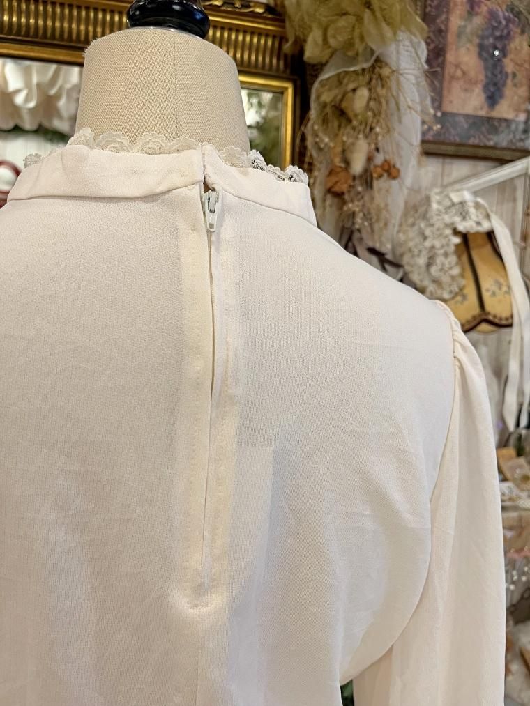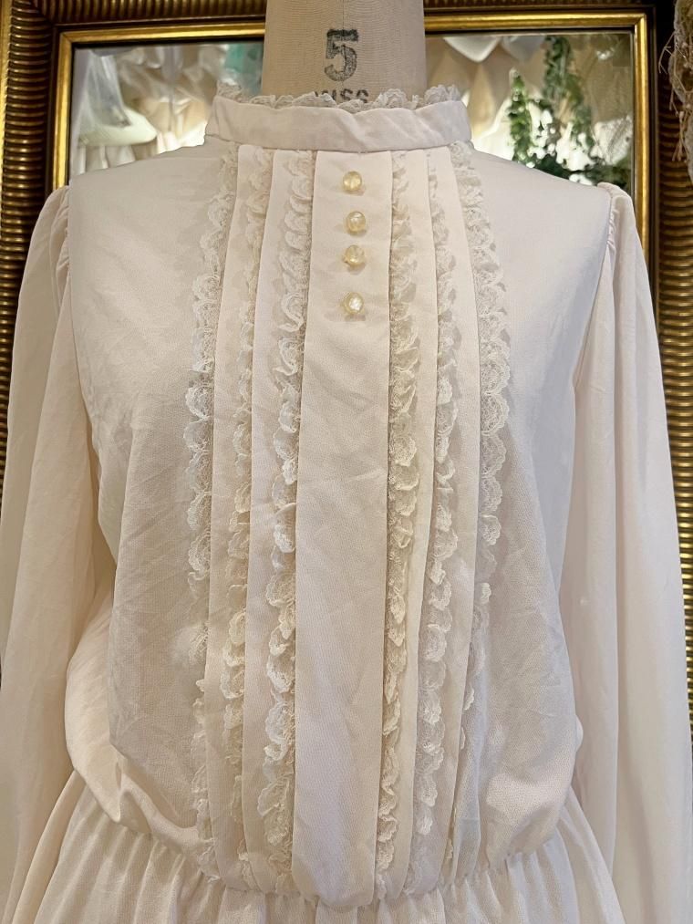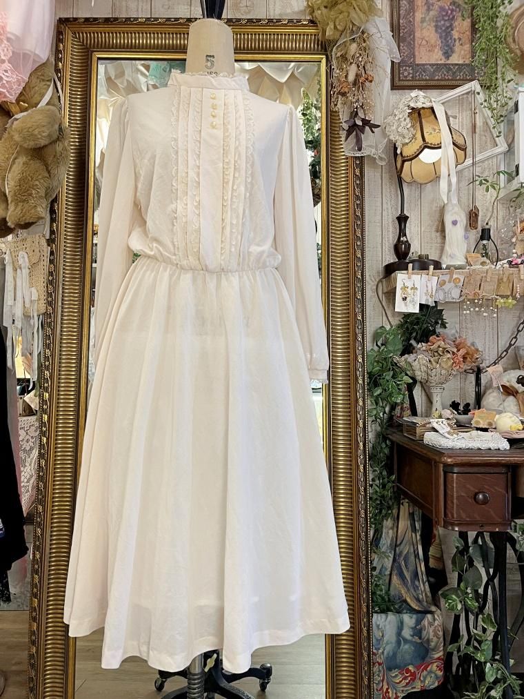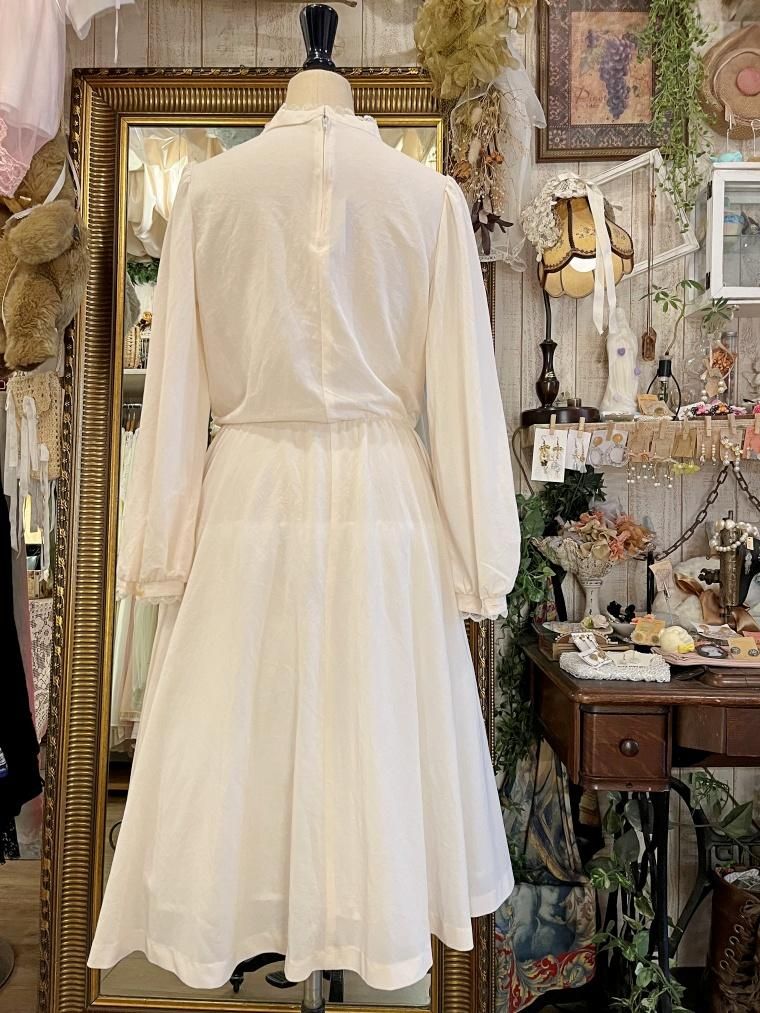 Vintage スタンドカラークリームホワイトワンピース 23499