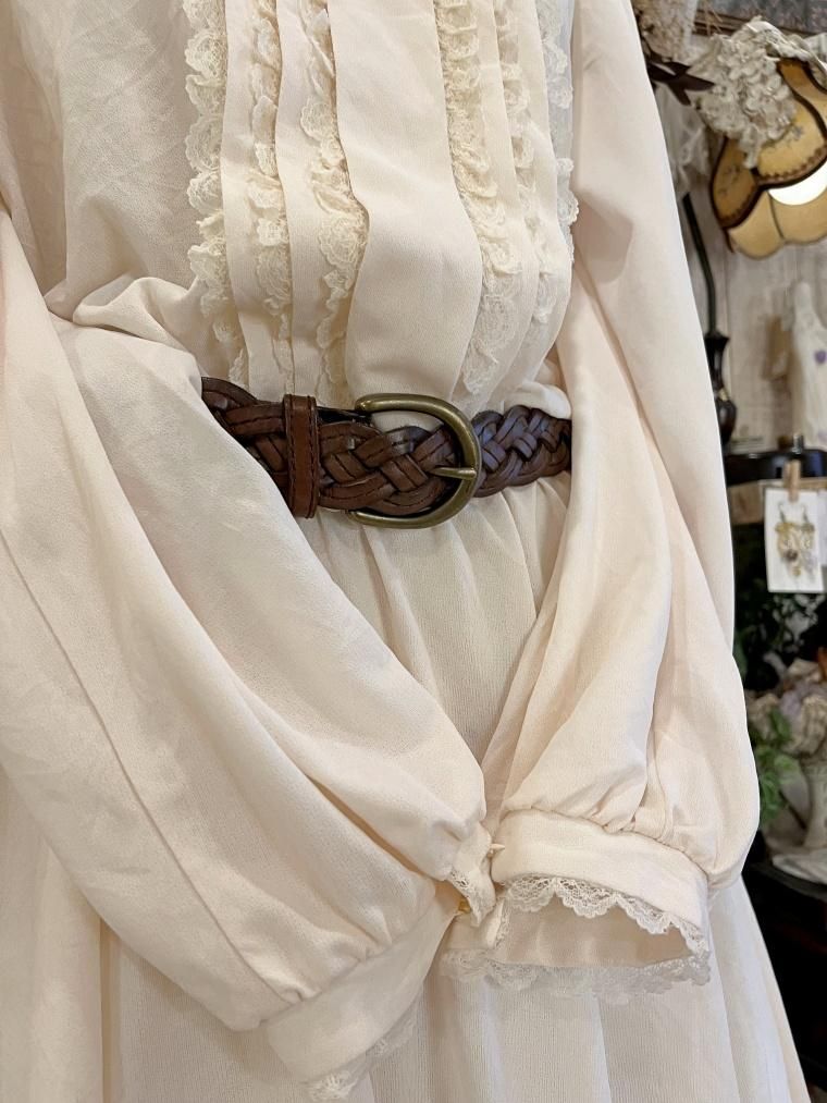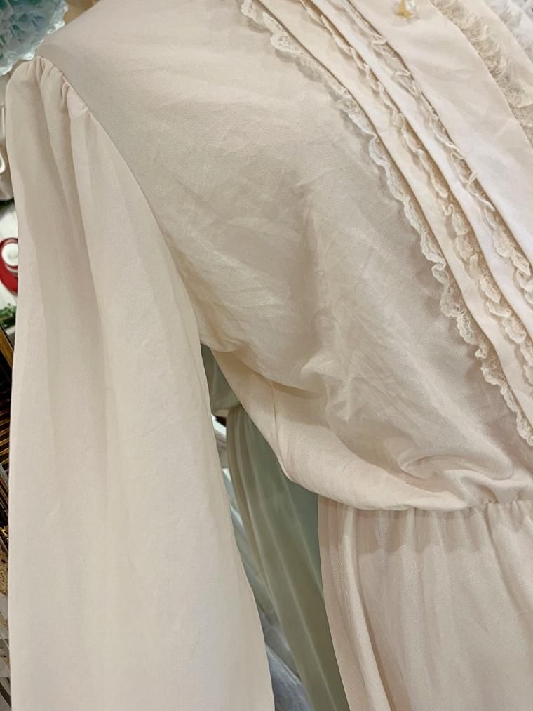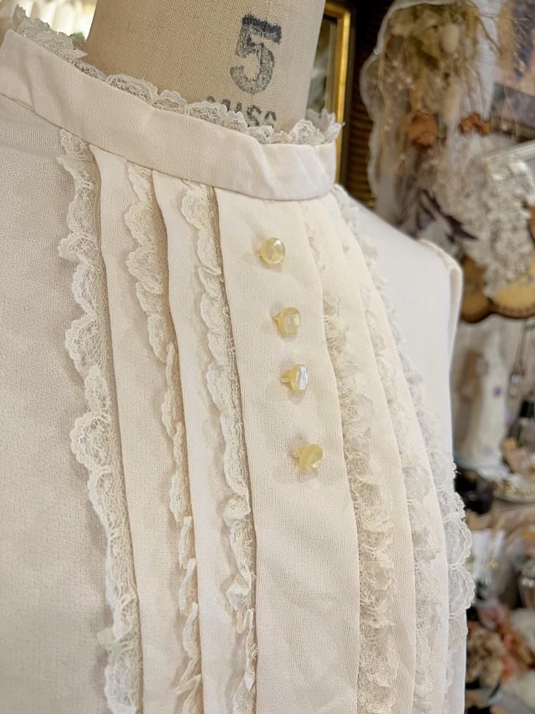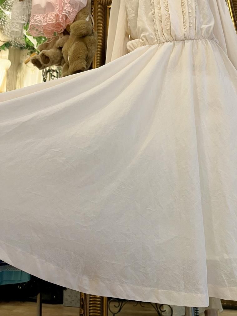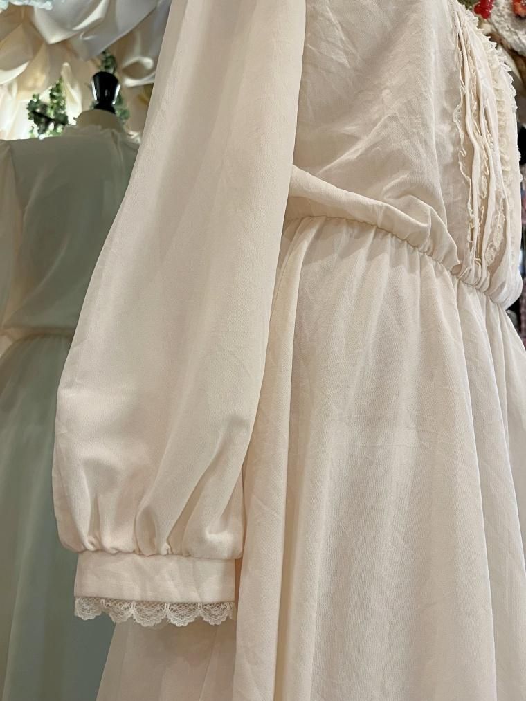 Vintage スタンドカラークリームホワイトワンピース 23499