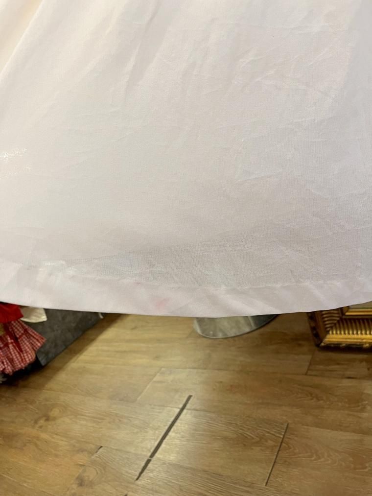 最後の画像のように、前身頃右の裾にピンク色のシミがあります。
