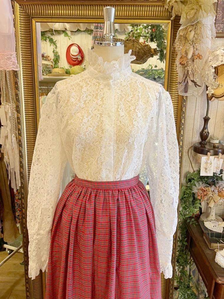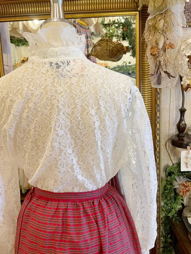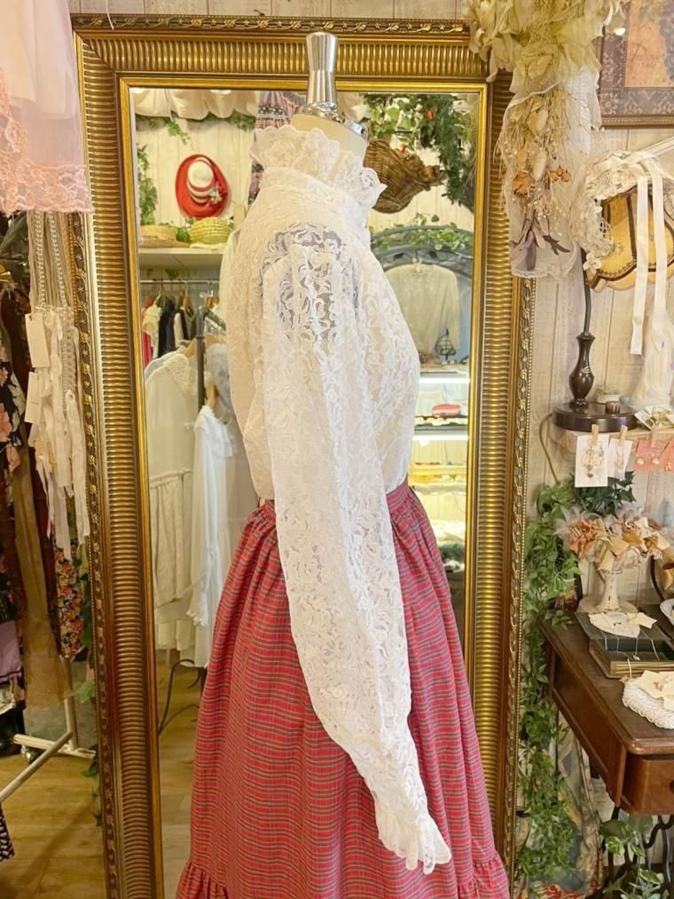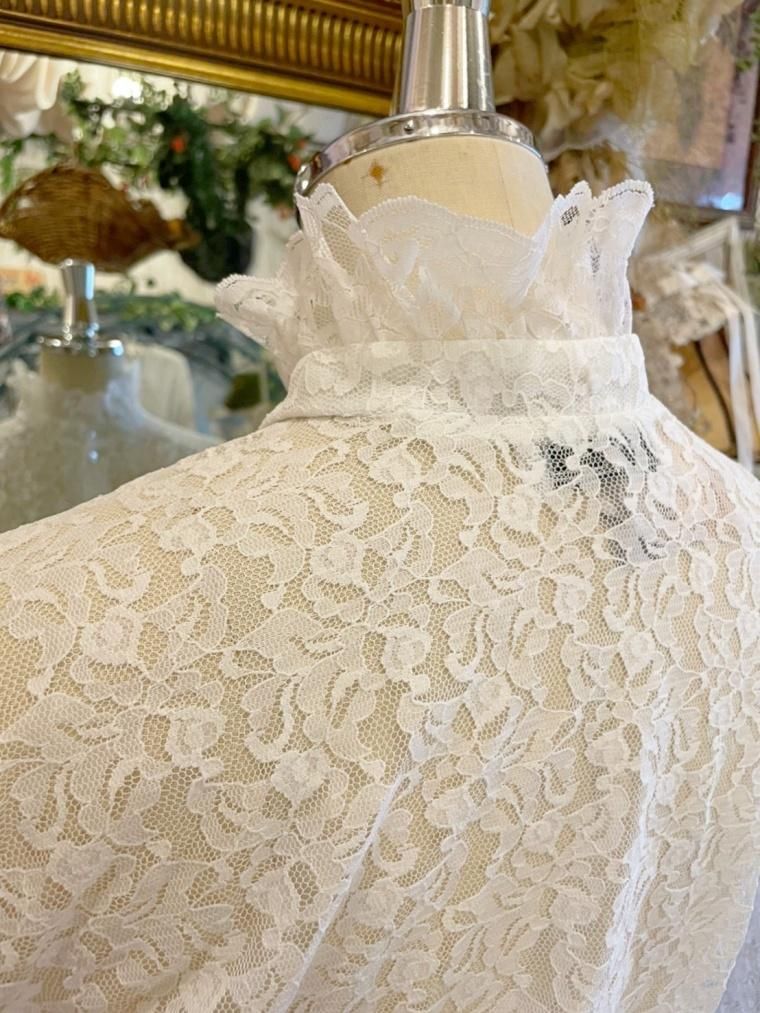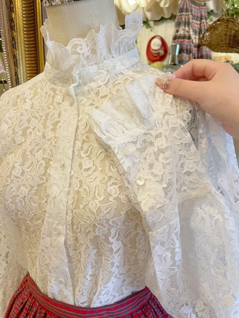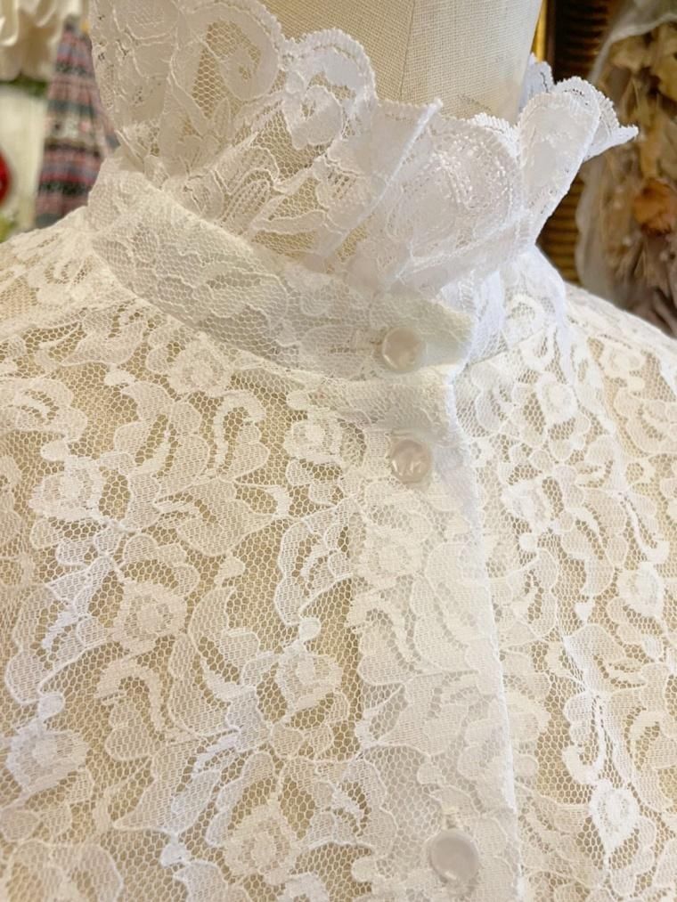 Vintage スタンドカラー総レースブラウス 23558