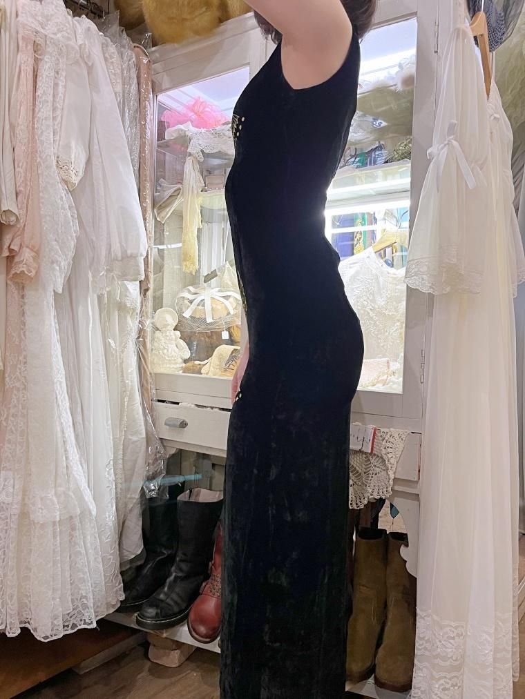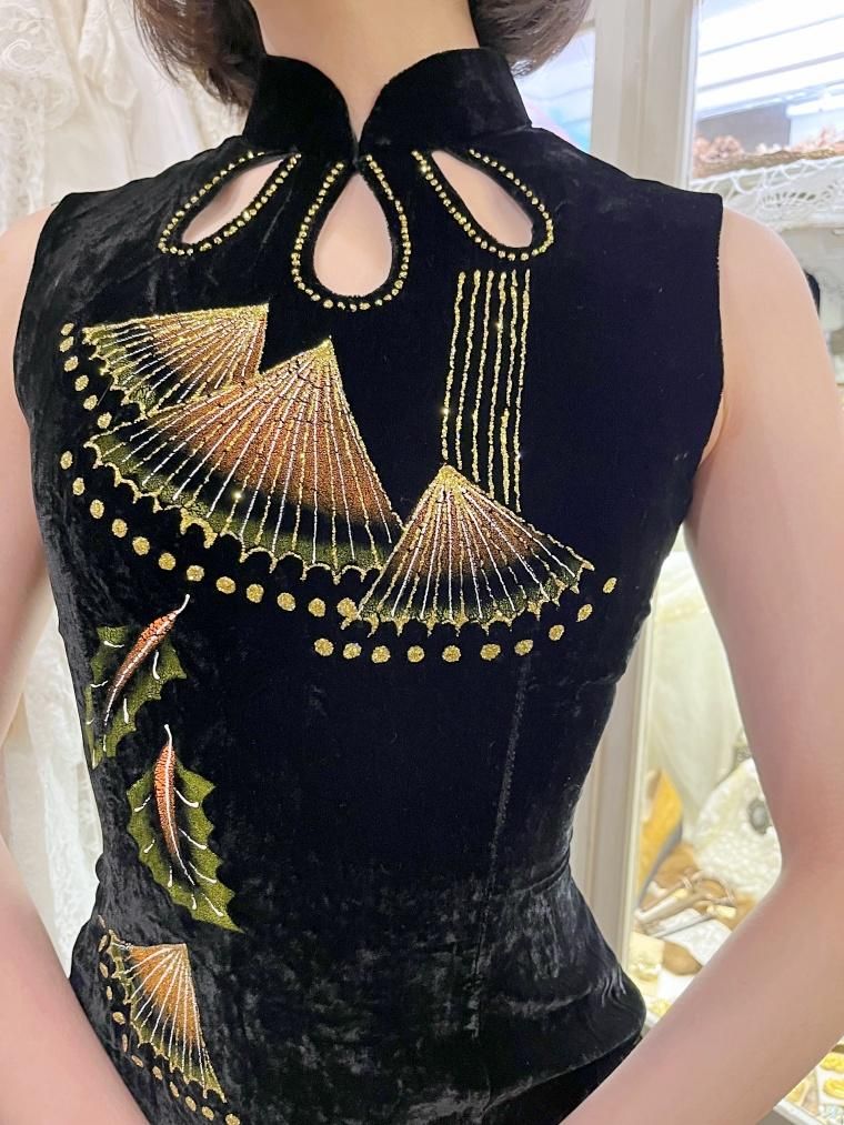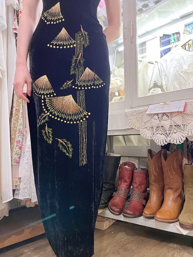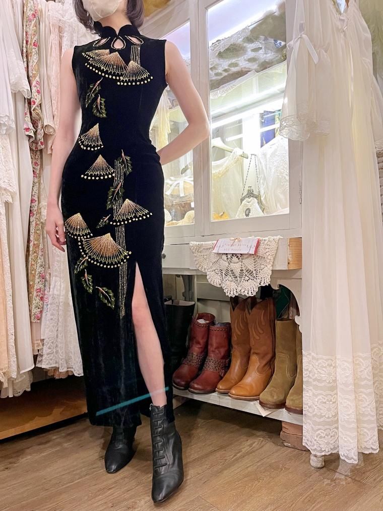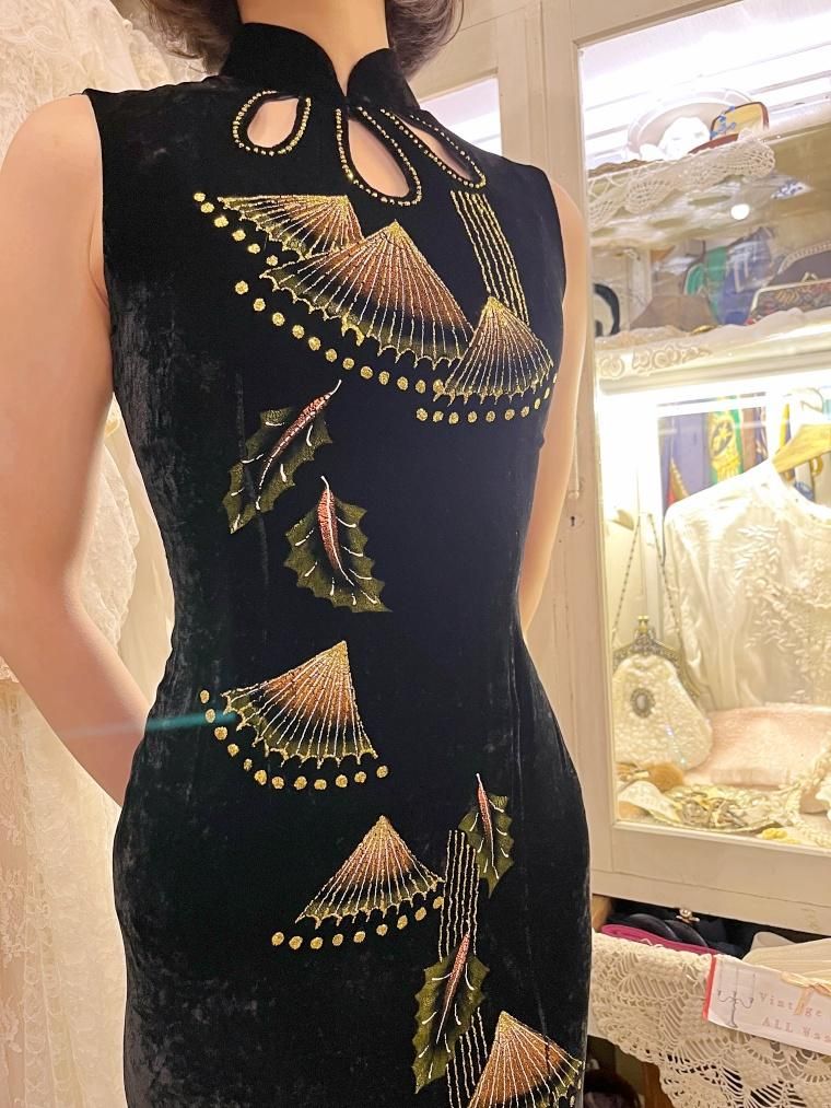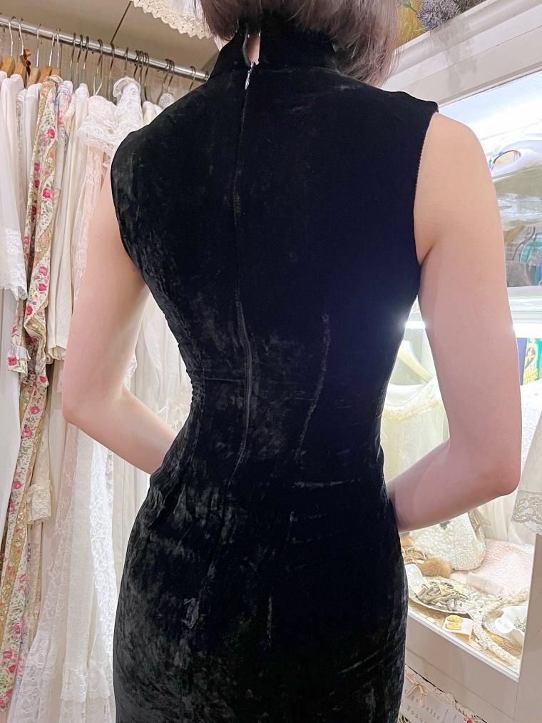 Vintage ラメ入りベロアスリムロングチャイナドレス 23665