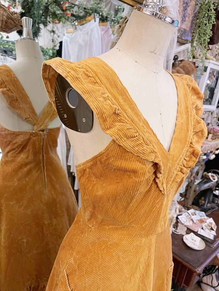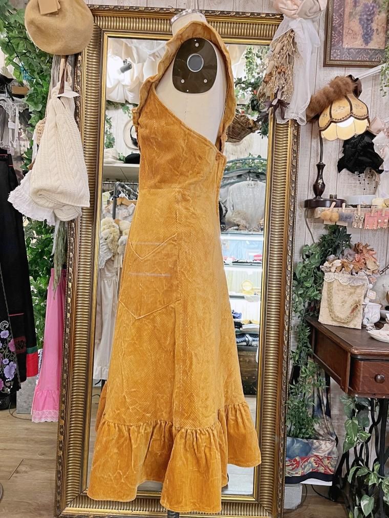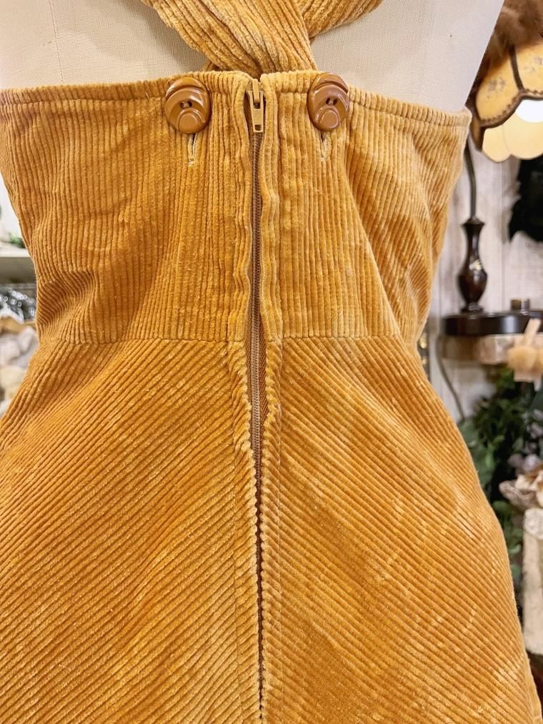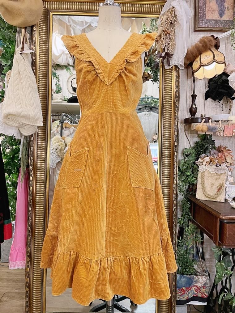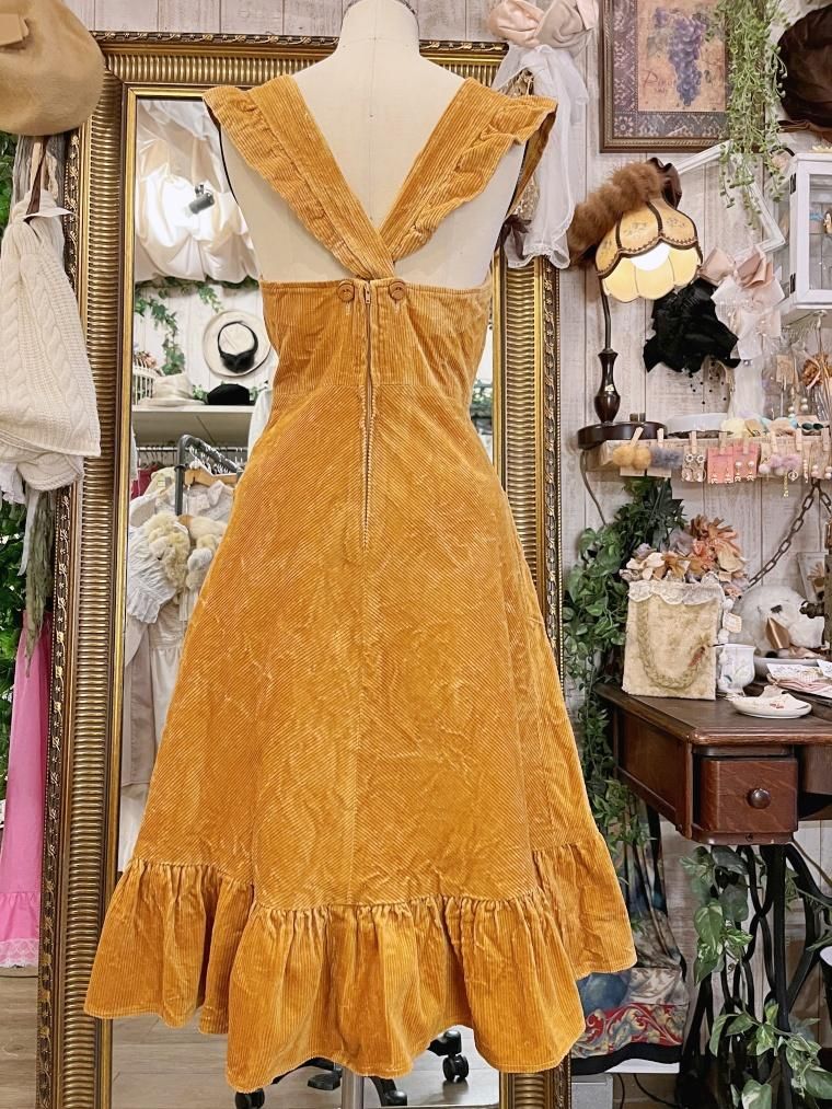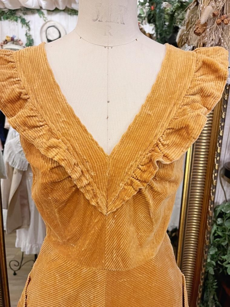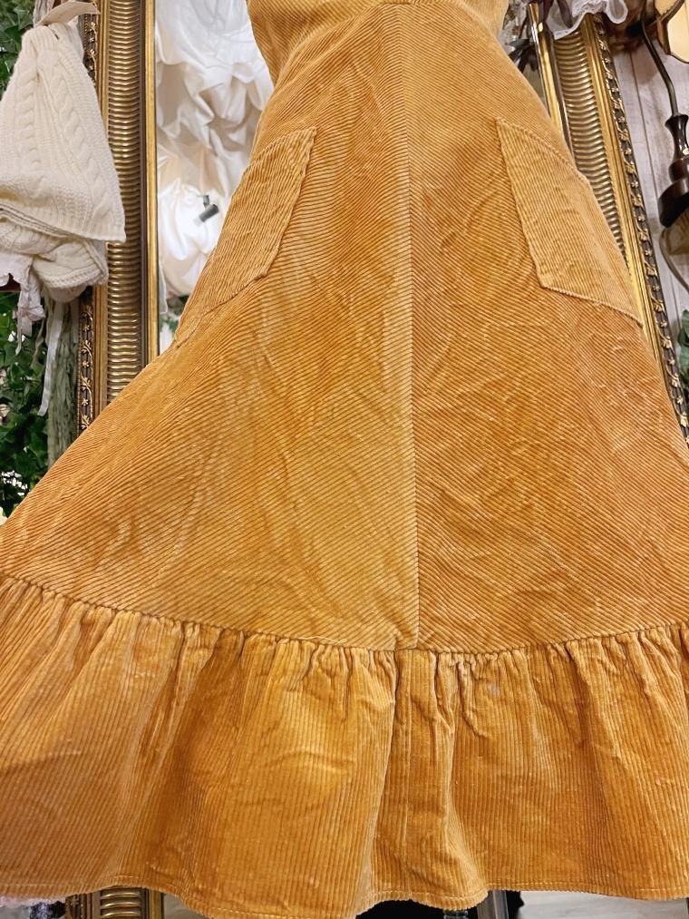 Vintage フリルコーデュロイジャンパースカート 23745