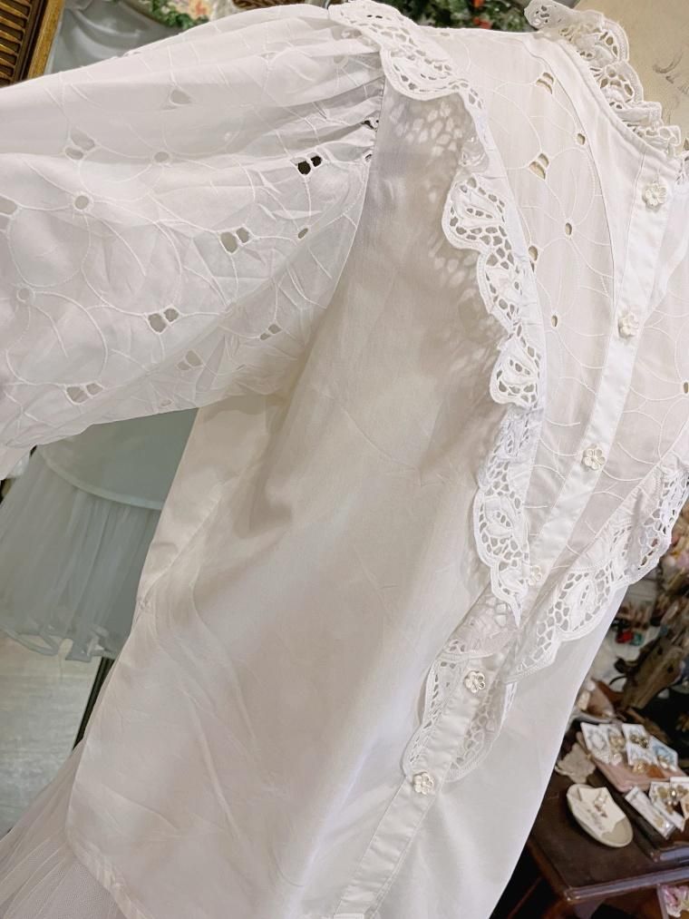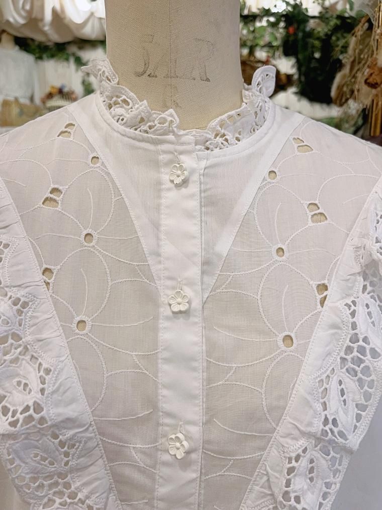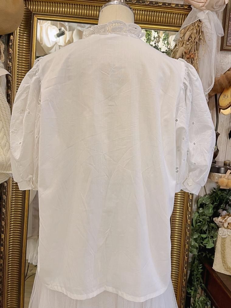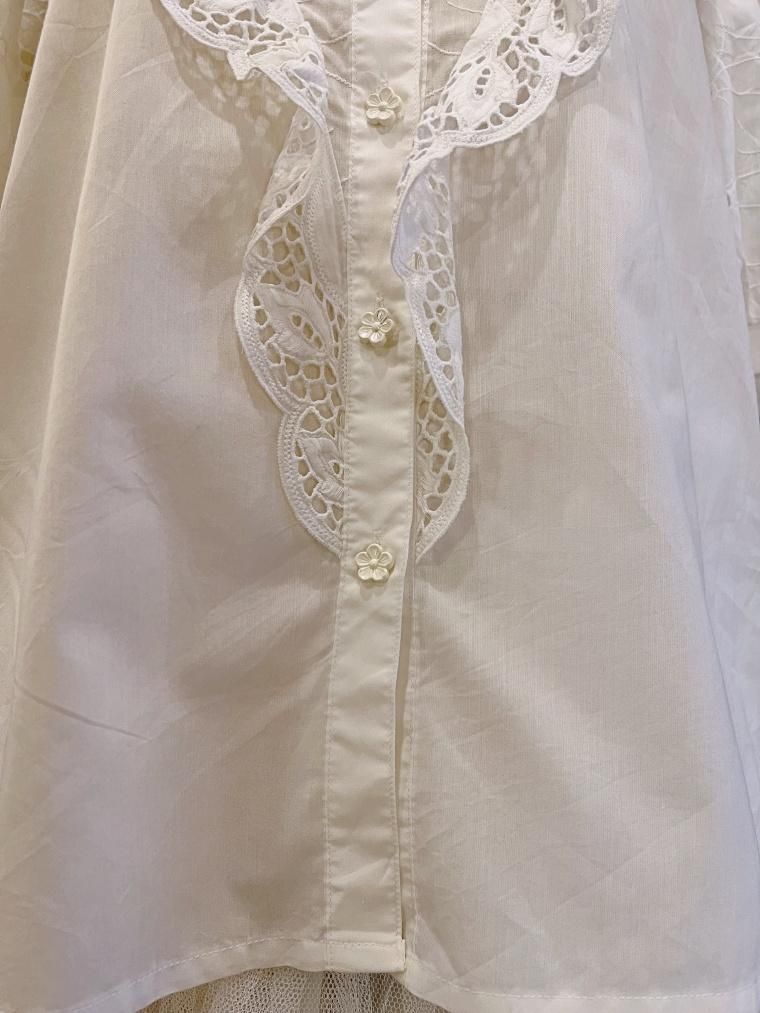 Vintage フラワーボタンピュアホワイトブラウス 23741