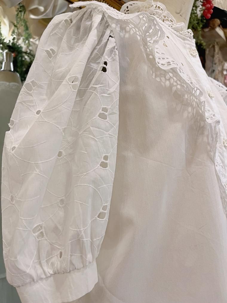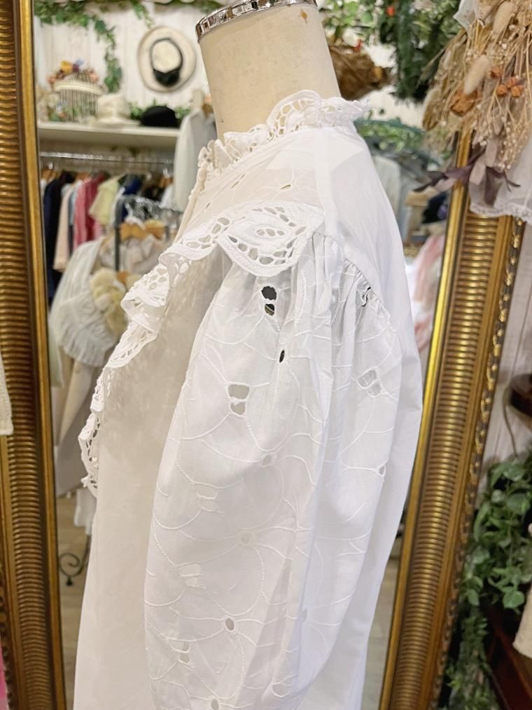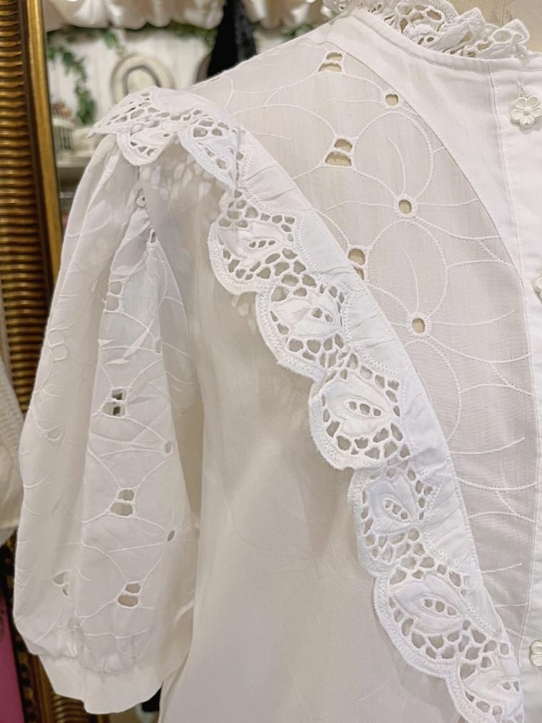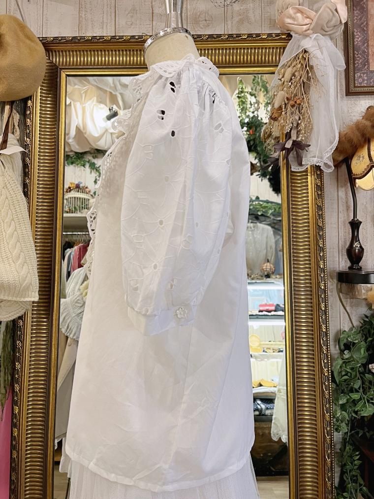 Vintage フラワーボタンピュアホワイトブラウス 23741