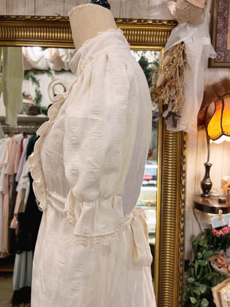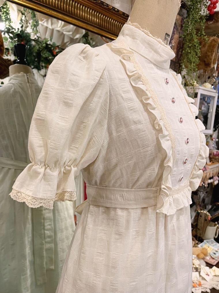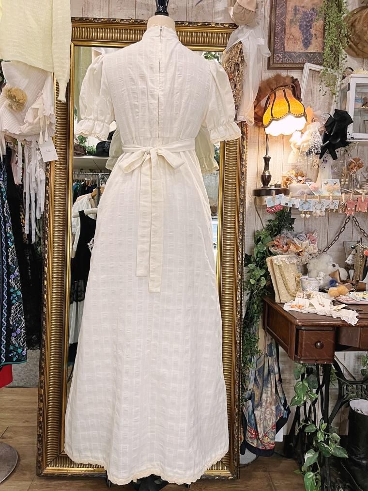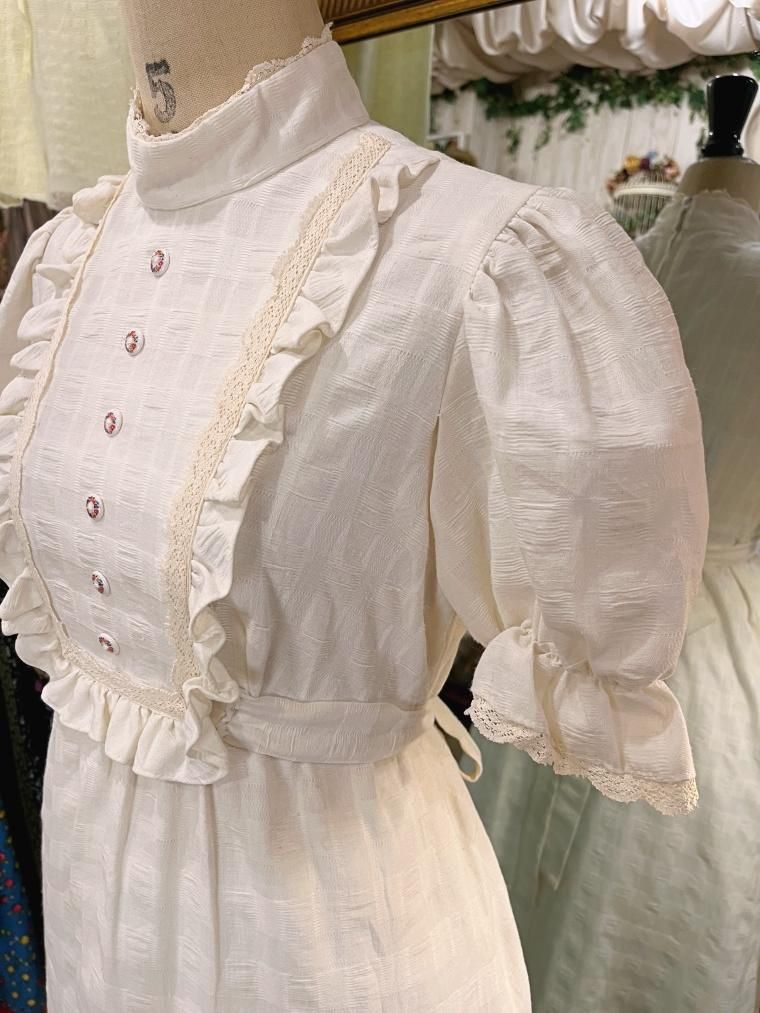 Vintage パフスリーブオフホワイトロングワンピース 23831