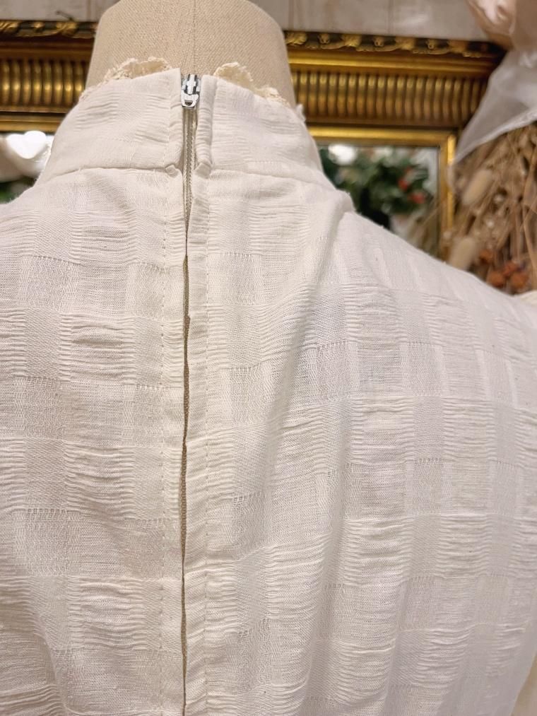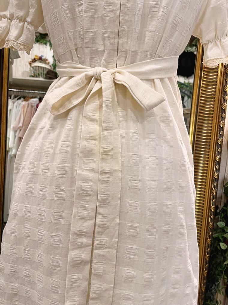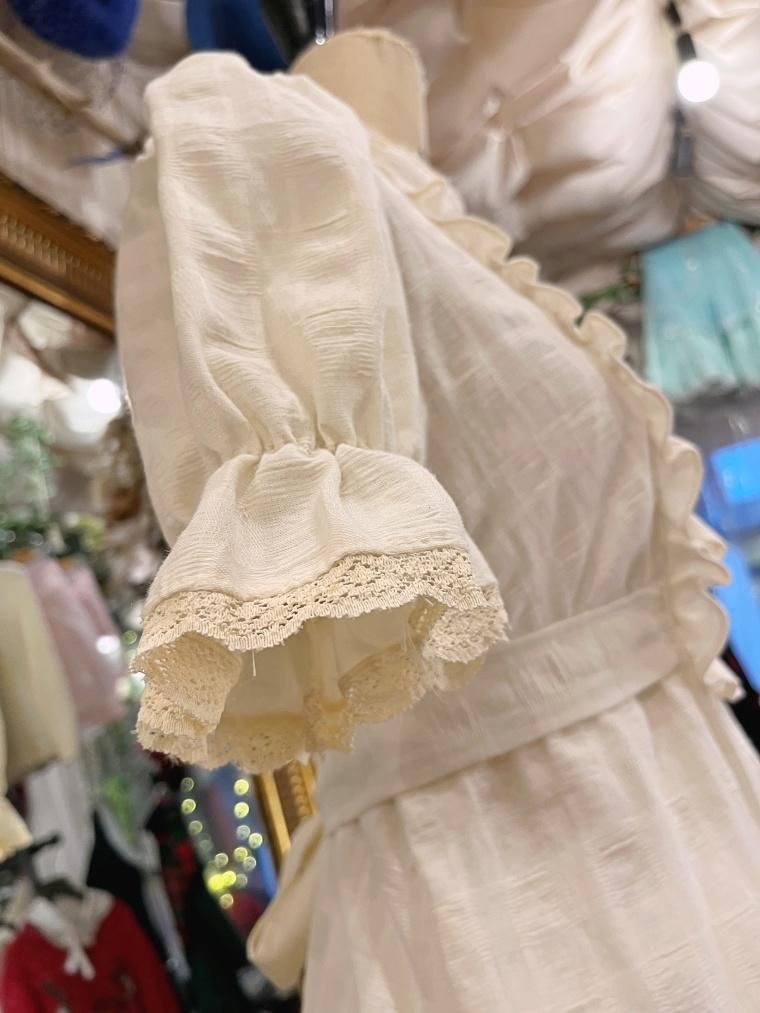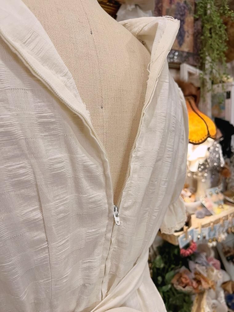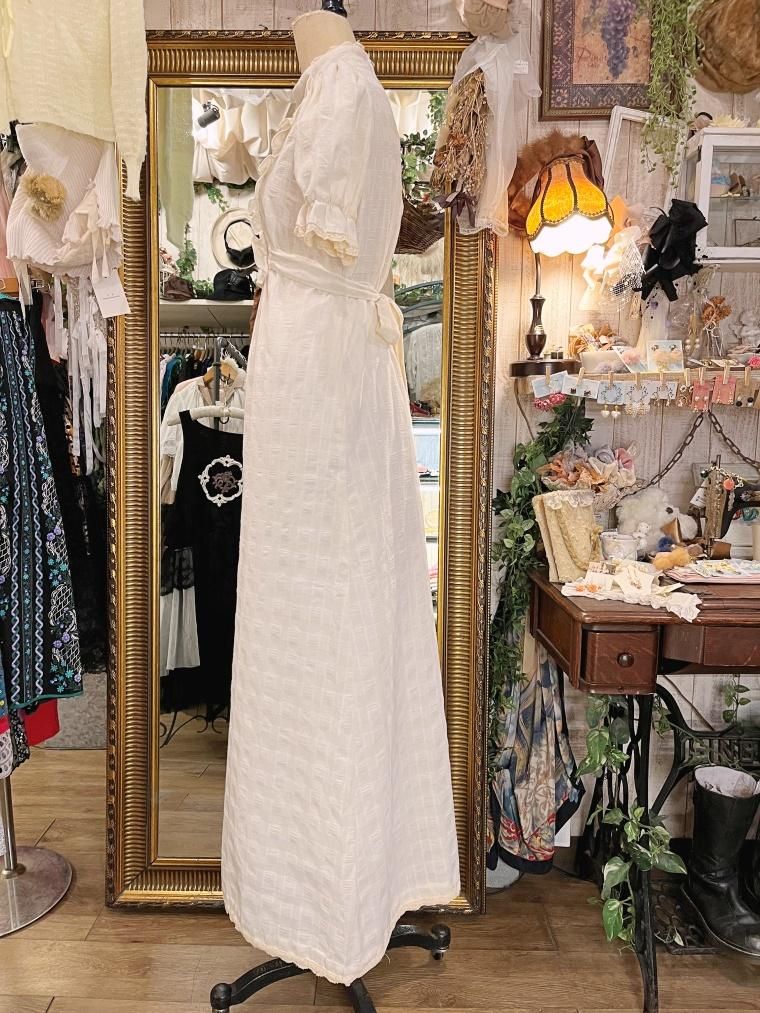 Vintage パフスリーブオフホワイトロングワンピース 23831