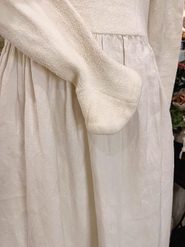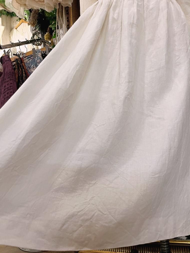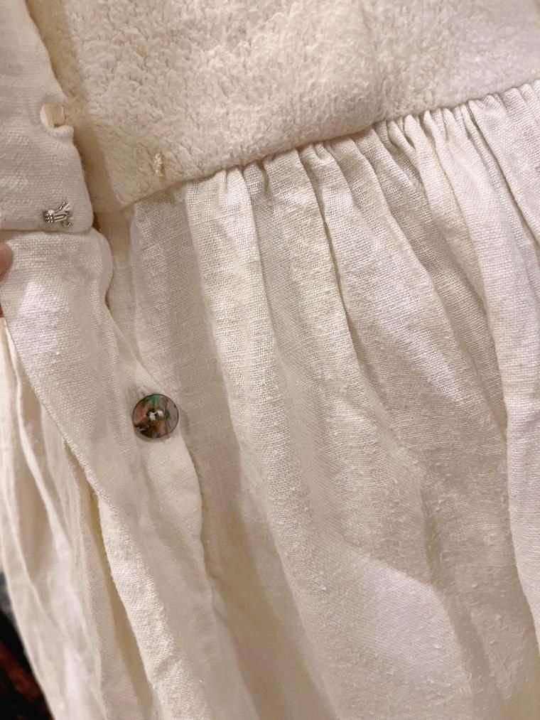 スカート部分はリネン風の上質なコットン素材で切り替えられています。