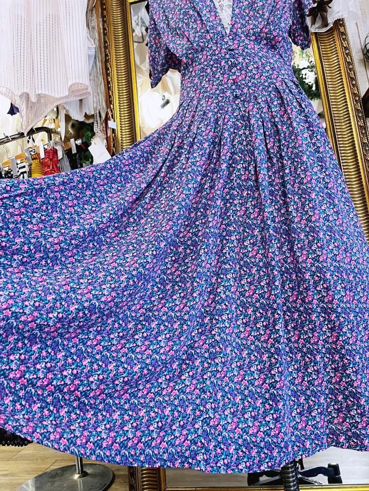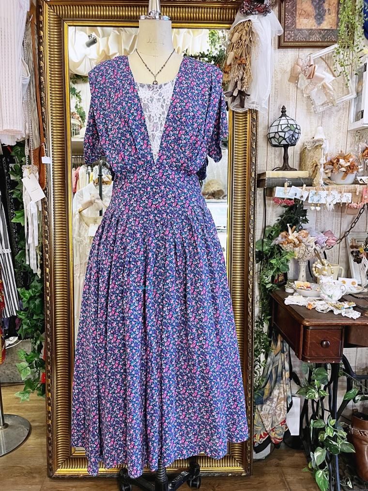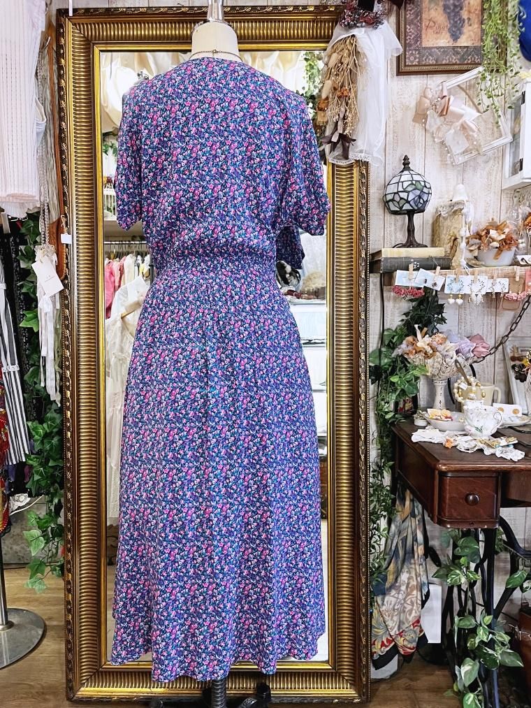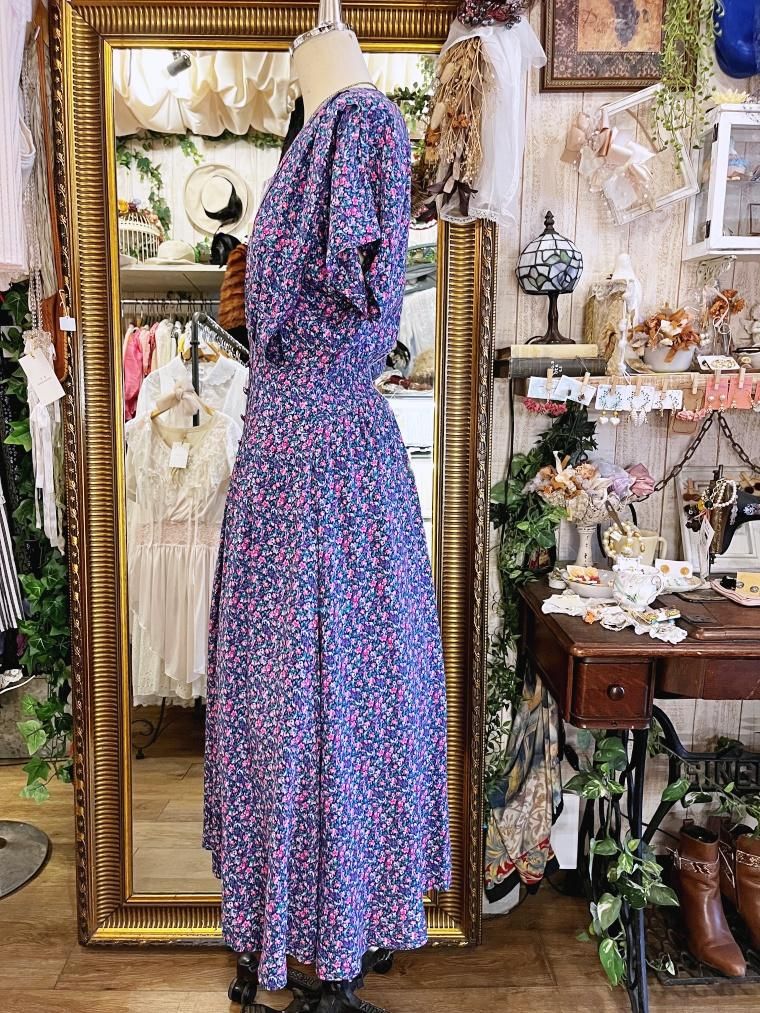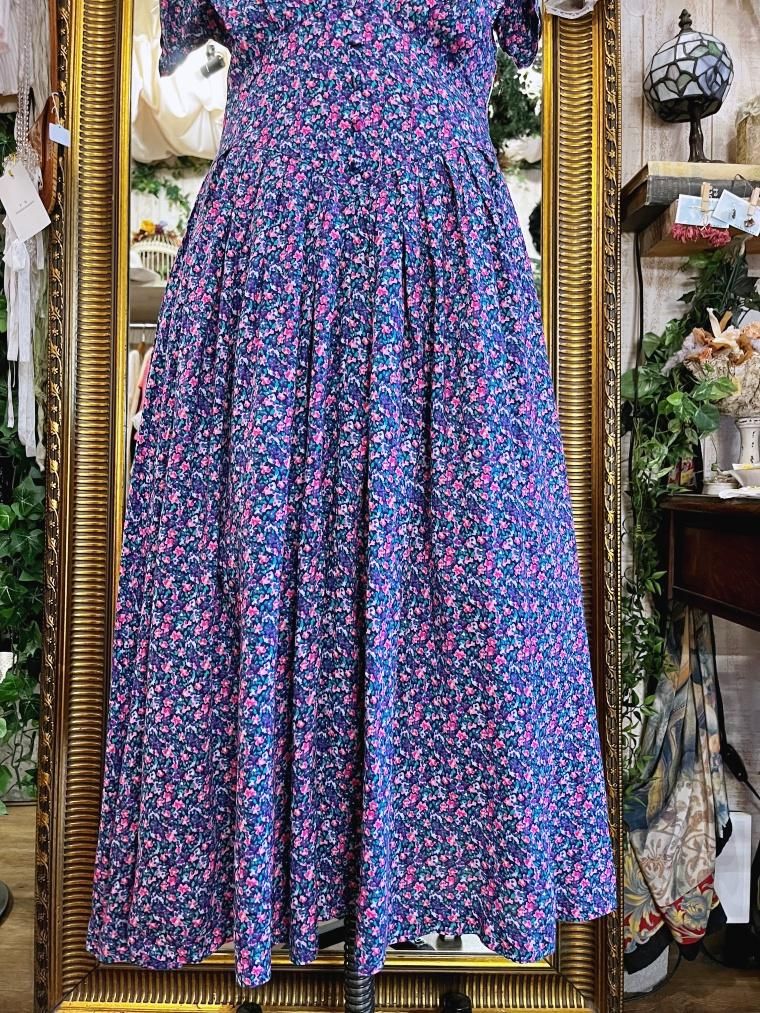 Vintage 小花柄レーヨンロングワンピース 23996