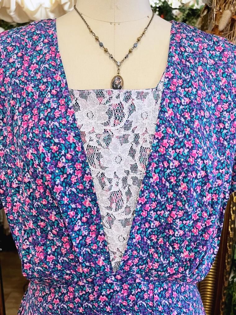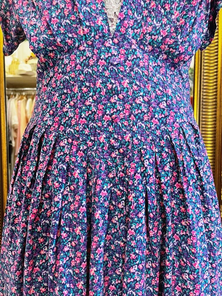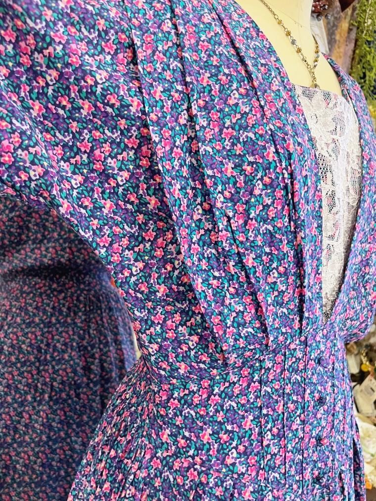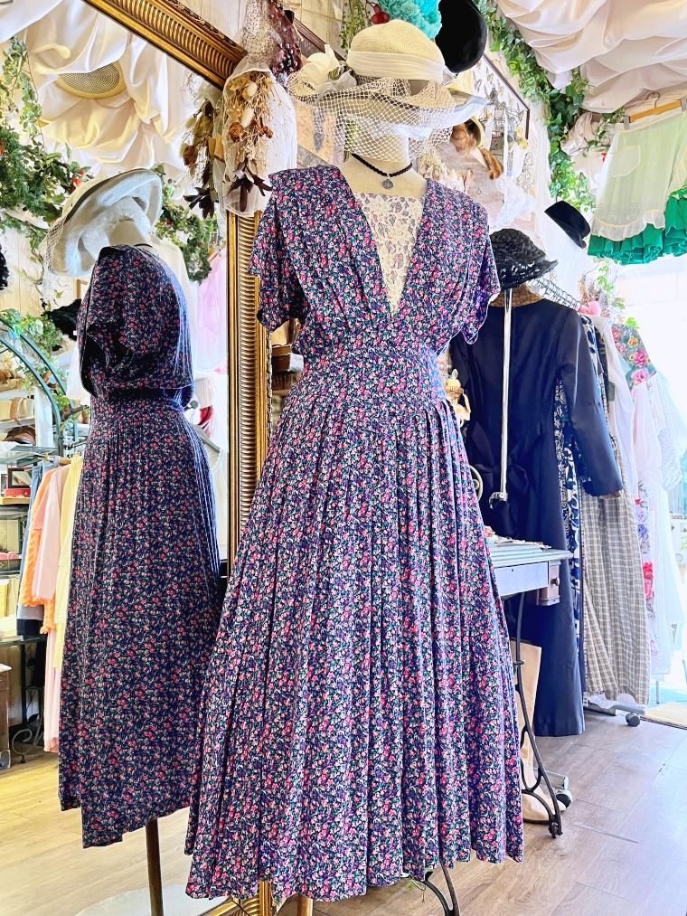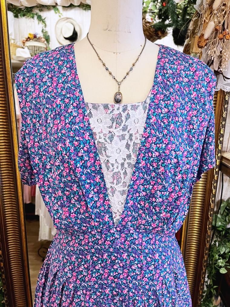 Vintage 小花柄レーヨンロングワンピース 23996