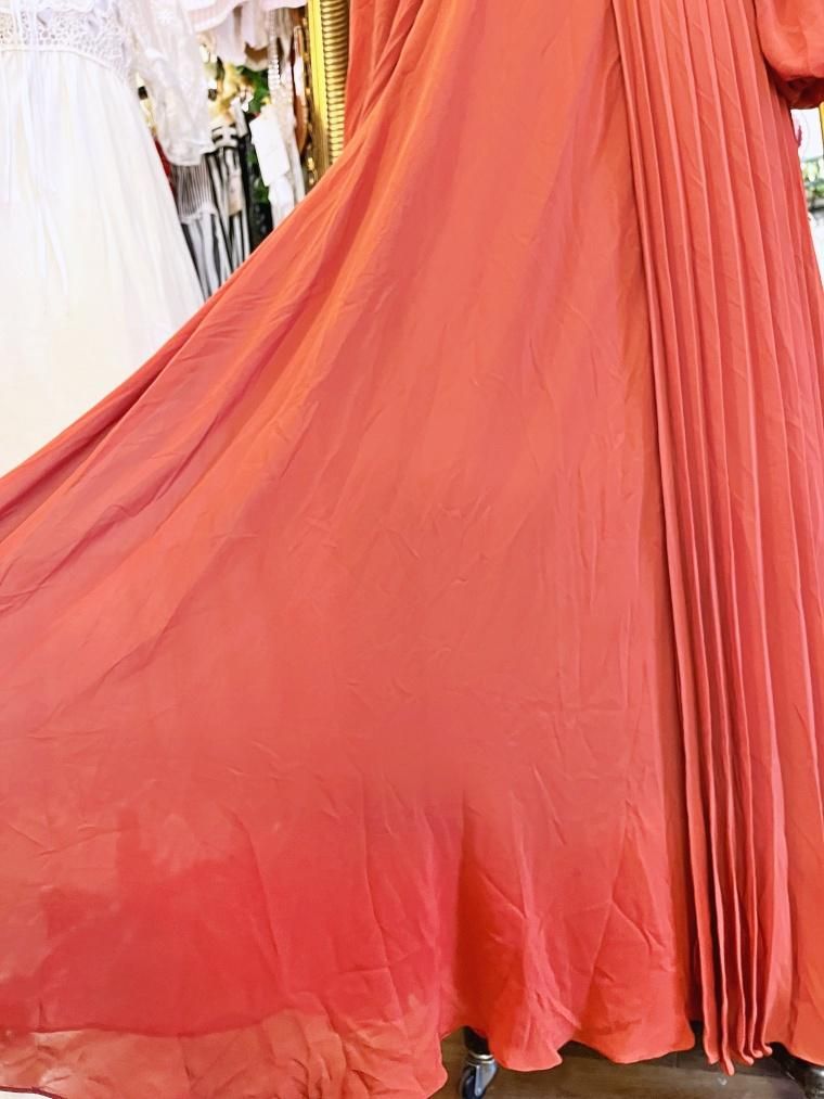 細かなプリーツが高貴な印象の一着です。